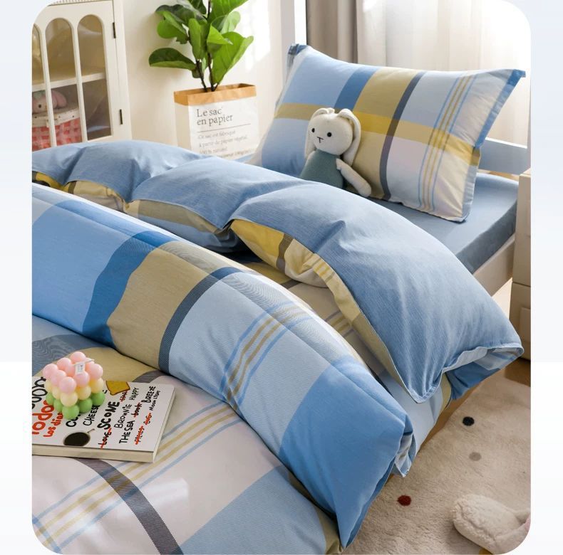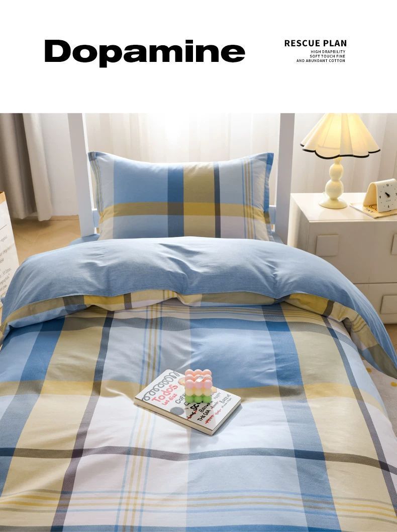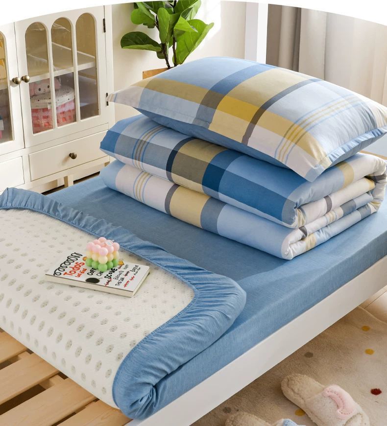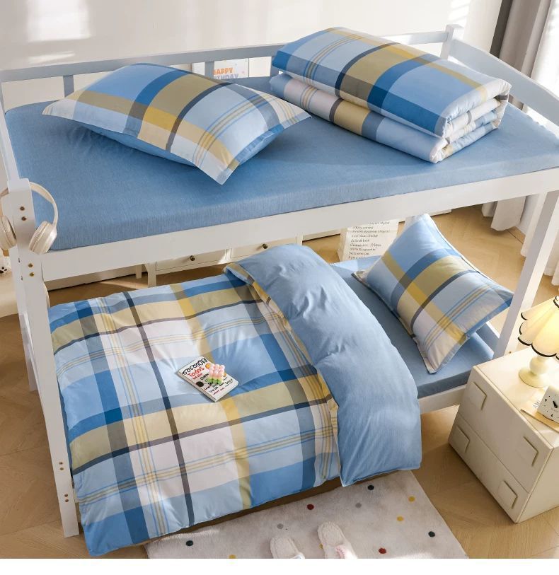 Juego de cama de dormitorio de estudiantes universitarios de tres piezas de algodón, sábana individual de algodón, funda de edredón, juego completo de seis piezas