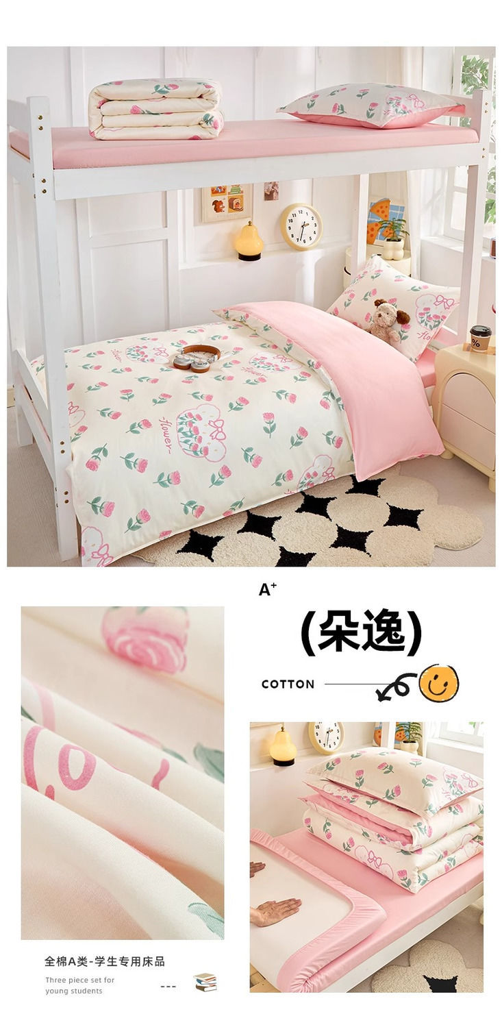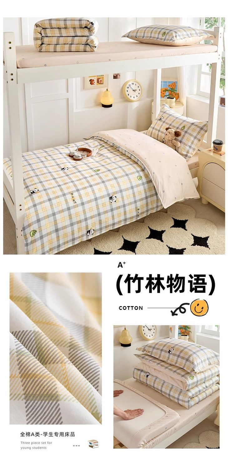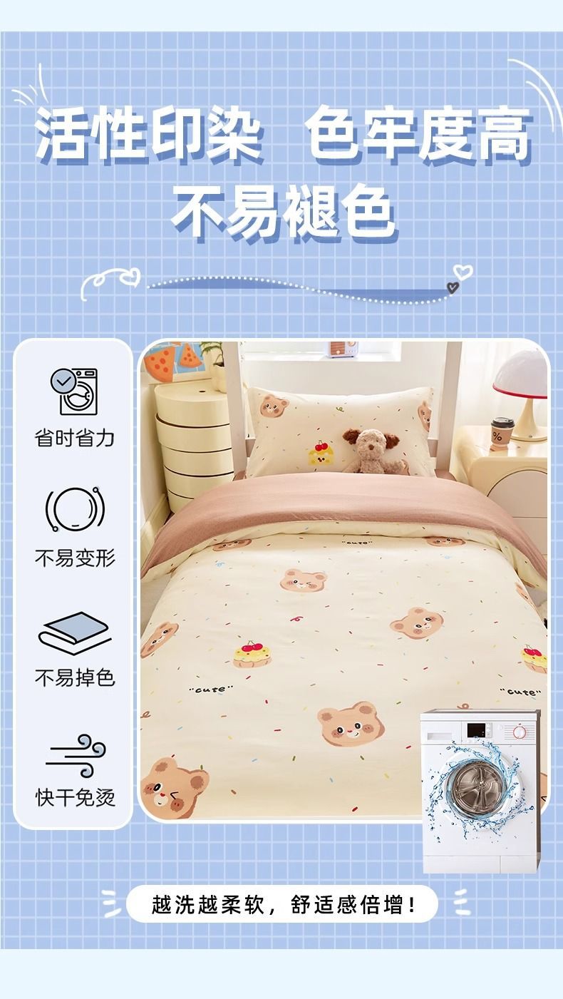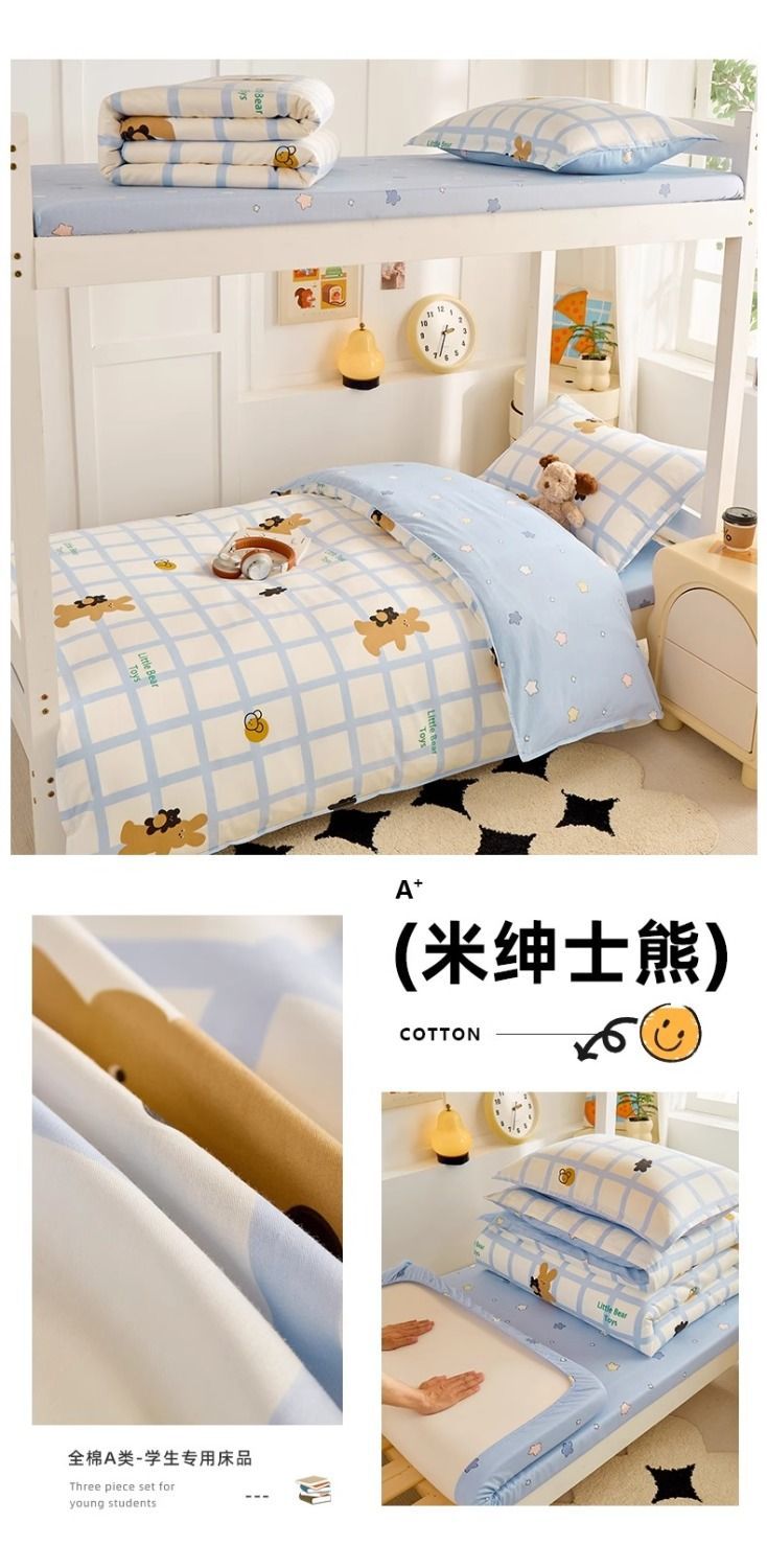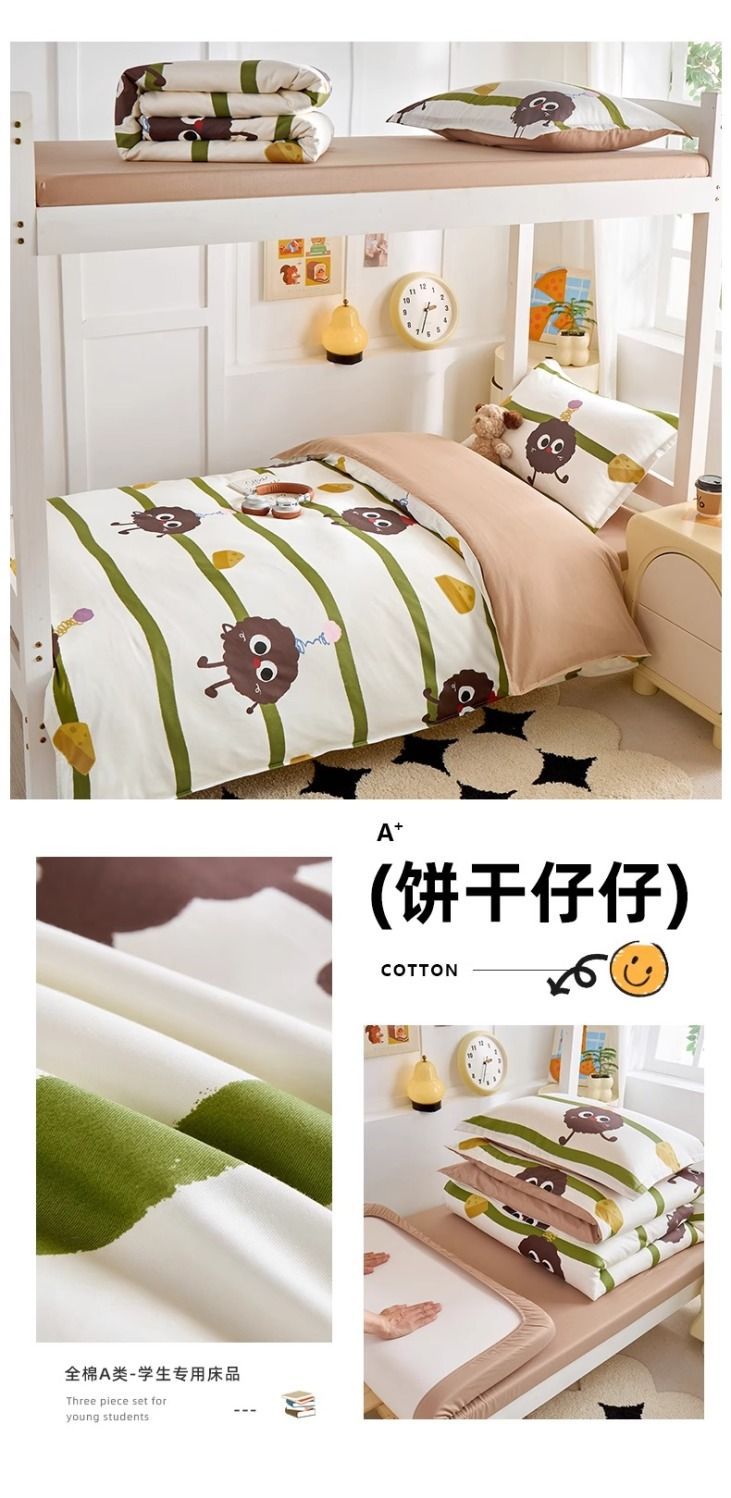 Caricatura de algodón de alto valor facial dormitorio de estudiantes cama de tres piezas de dormitorio de algodón sábanas individuales cubiertas de un conjunto completo