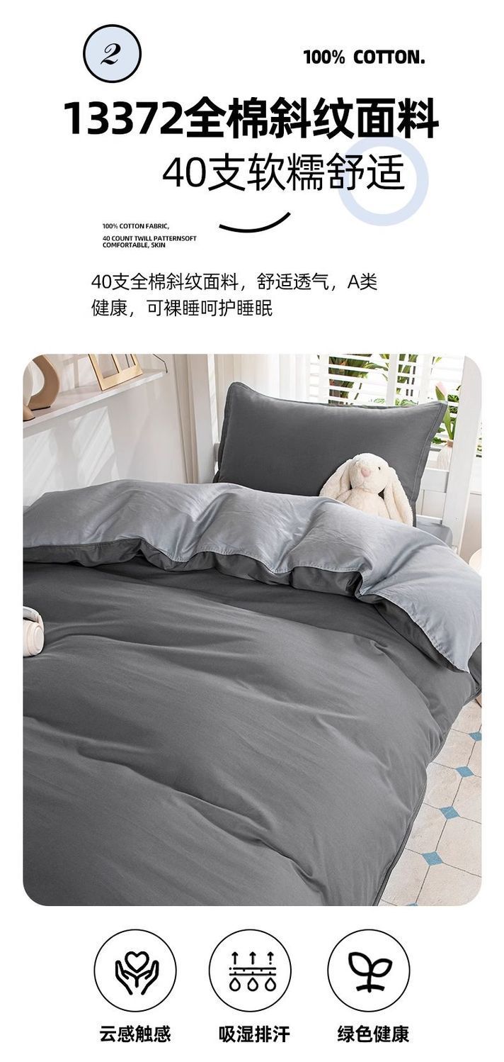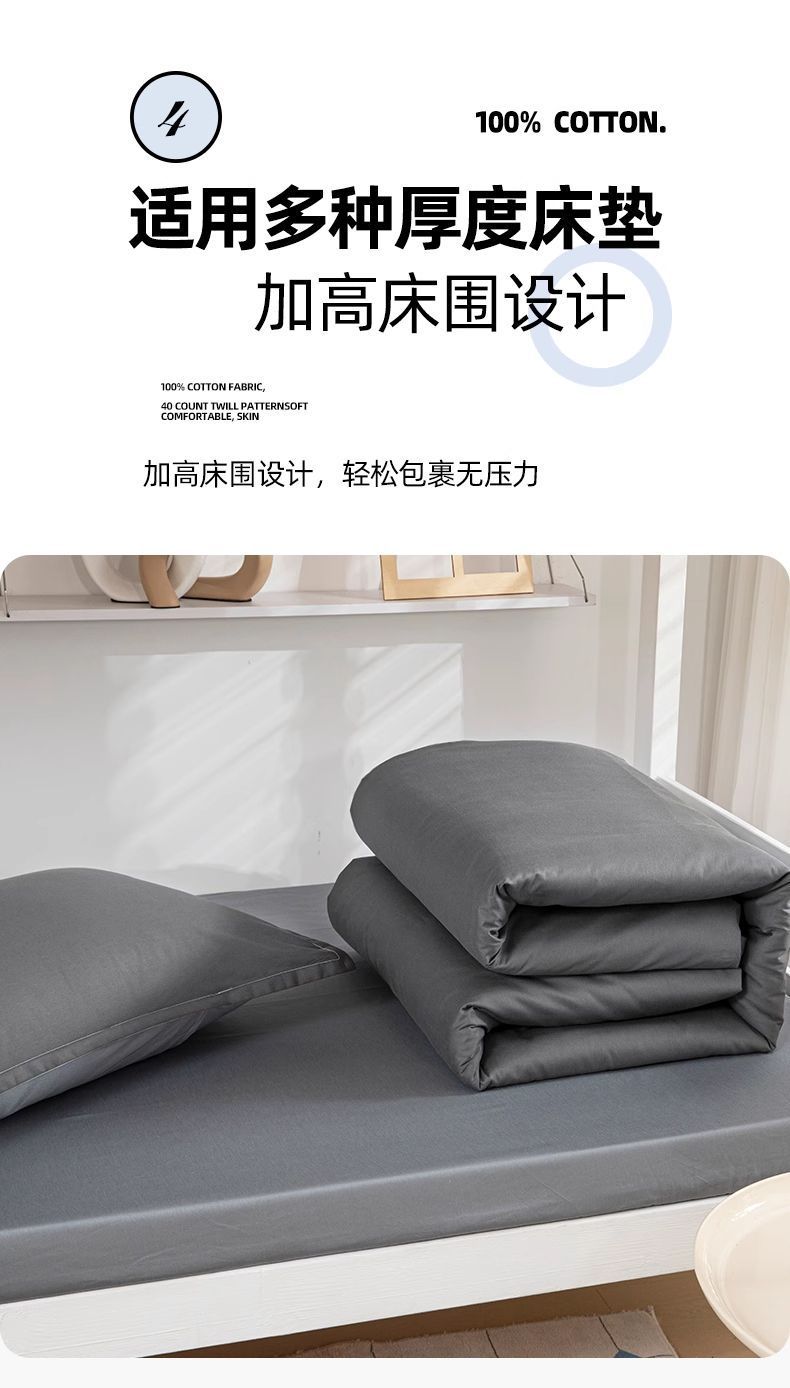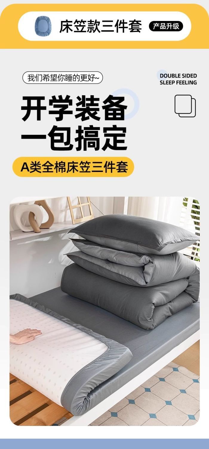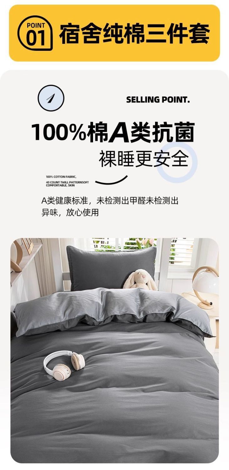 Nuevo dormitorio de estudiantes universitarios tres piezas de cama de cama de cama de algodón puro cubierta de sábanas de cama de algodón completo gris oscuro para una persona
