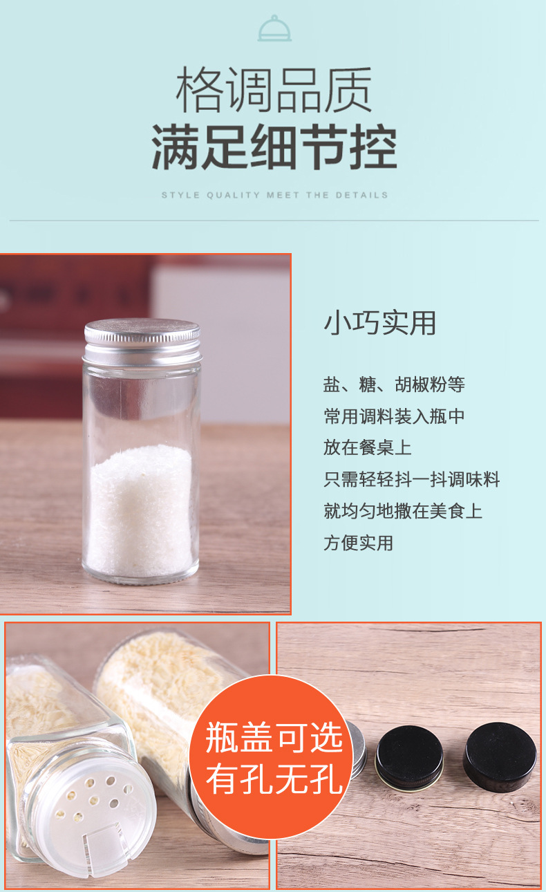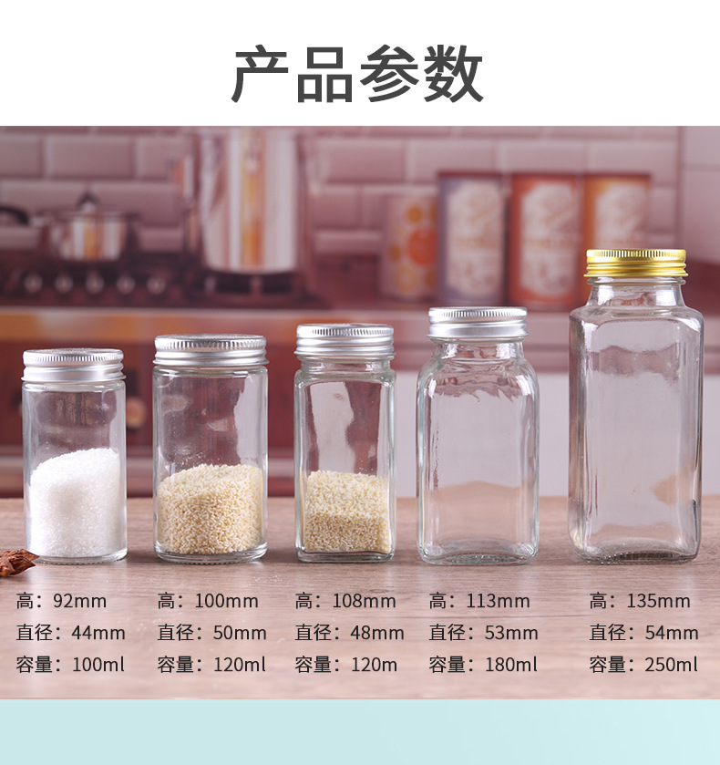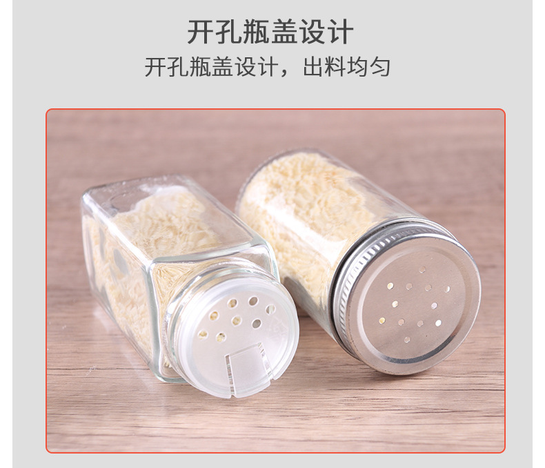 Botella de condimento de vidrio transparente cuadrada sellada cubierta abierta botella de condimento de cocina botella de condimento fábrica directa