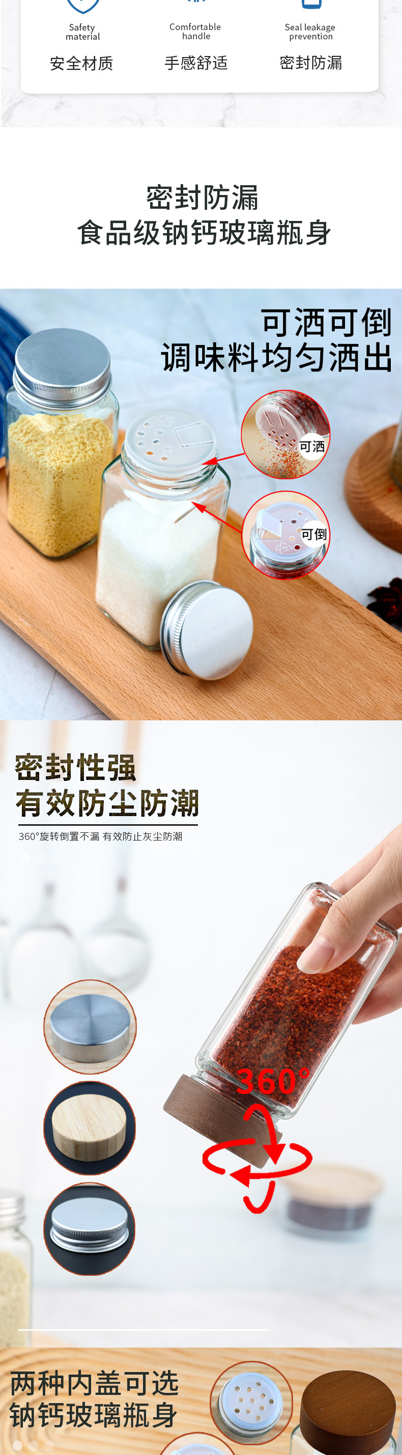 Botella de condimento de 120ml cocina cuadrada condimento tanque de almacenamiento guisado de fideos frasco de polvo de pimienta frasco de sal de barbacoa