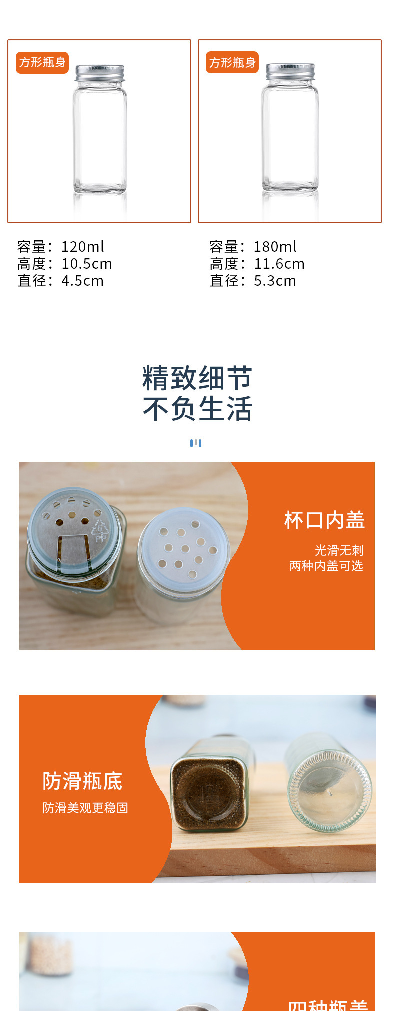 Botella para condimentos de 120ml, tarro cuadrado de vidrio transparente para condimentos, tarro portátil para condimentos para barbacoa, tarro medidor para condimentos para el hogar