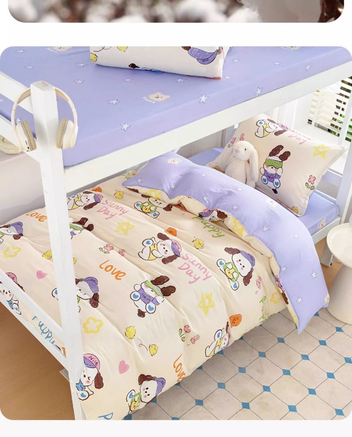 Sombrilla de cama de tres piezas para dormitorio de estudiantes universitarios de algodón puro 90x190 dormitorio individual niñas funda de edredón de dibujos animados sábanas