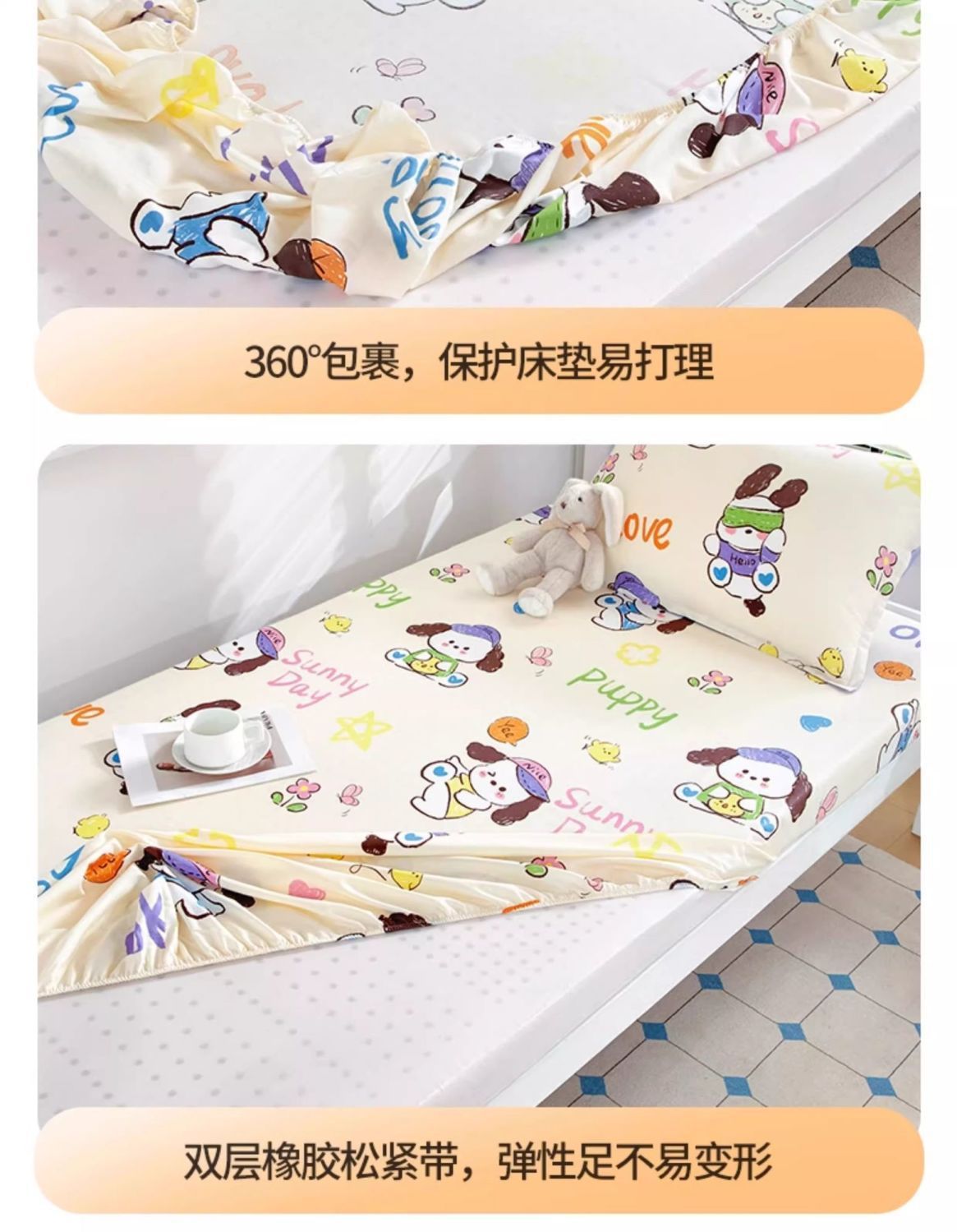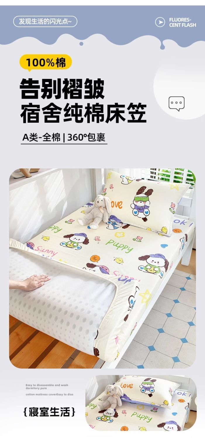 Sombrilla de cama especial para dormitorio de estudiantes Algodón de una sola pieza 90x190 Dormitorio Cama individual Cubierta de colchón Cubierta de cama Mujer de dibujos animados