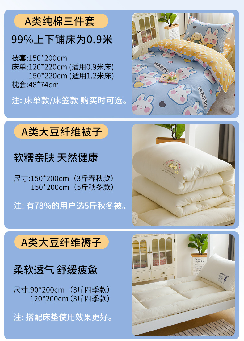 Dormitorio de estudiantes ropa de cama de tres piezas sábanas de cama de algodón caseta dormitorio de algodón 0,9 m cama individual 3