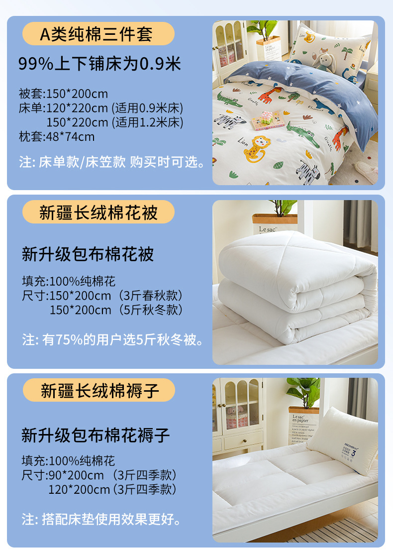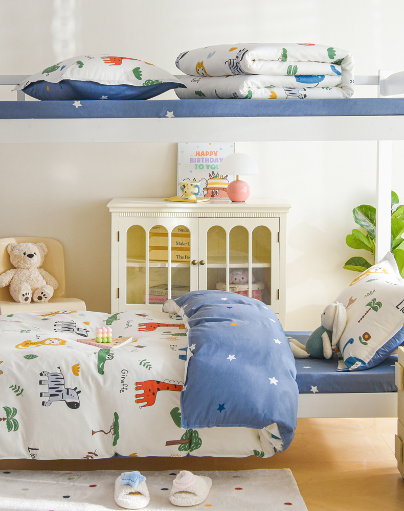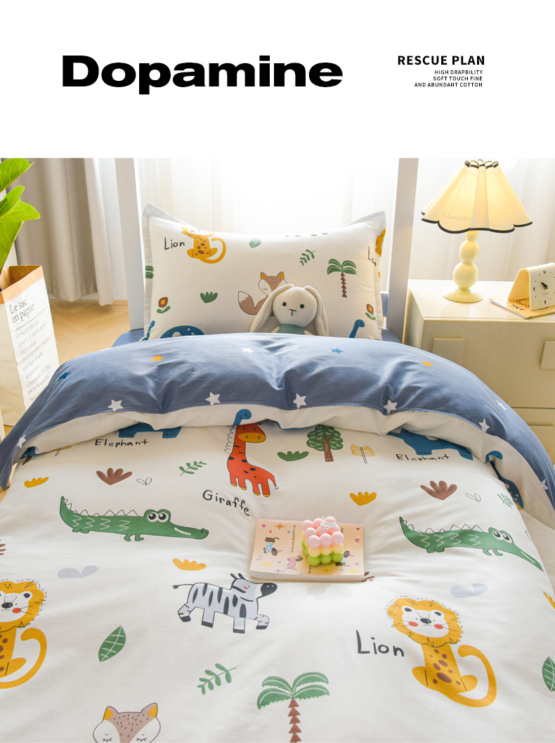 Círculos animados de algodón de tres piezas sábanas cubiertas de algodón puro dormitorio de estudiantes camas bajas y altas camas de niños camas de cuatro piezas