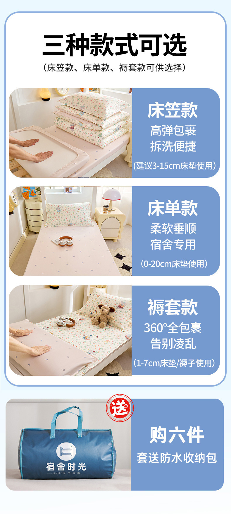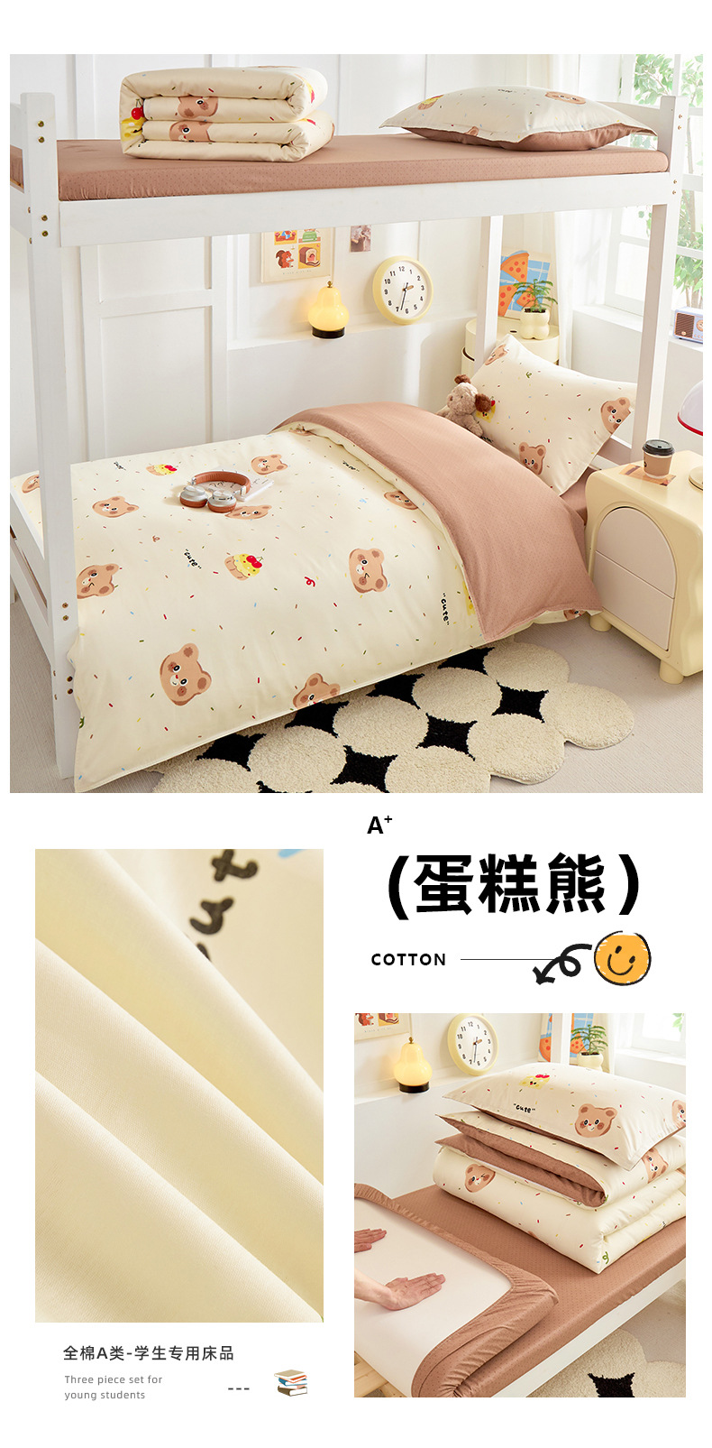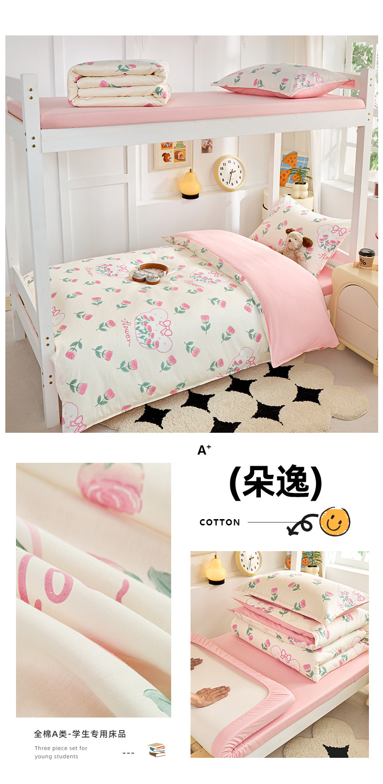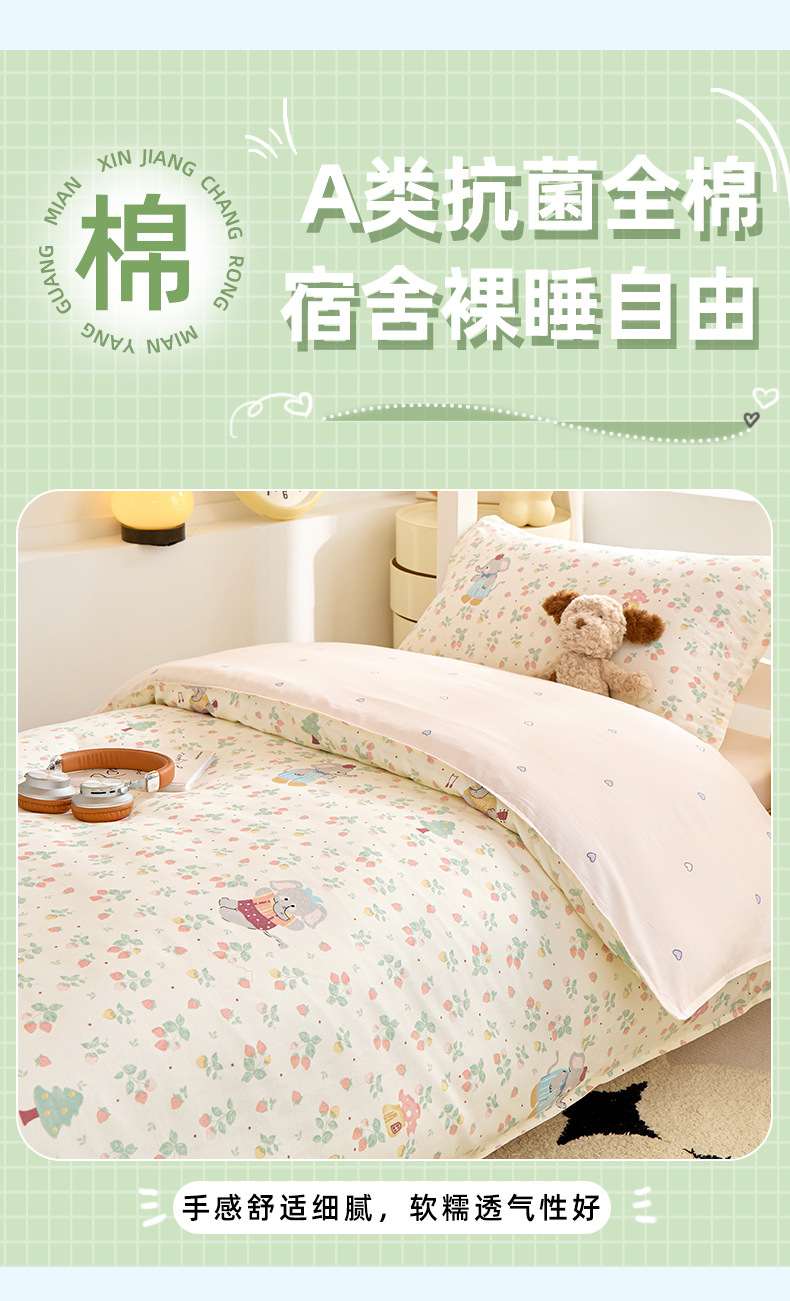 Dormitorio de estudiantes de tres piezas de cama de cama de cama de estilo 90x190 algodón puro algodón dormitorio universitario único núcleo de edredón de secundaria
