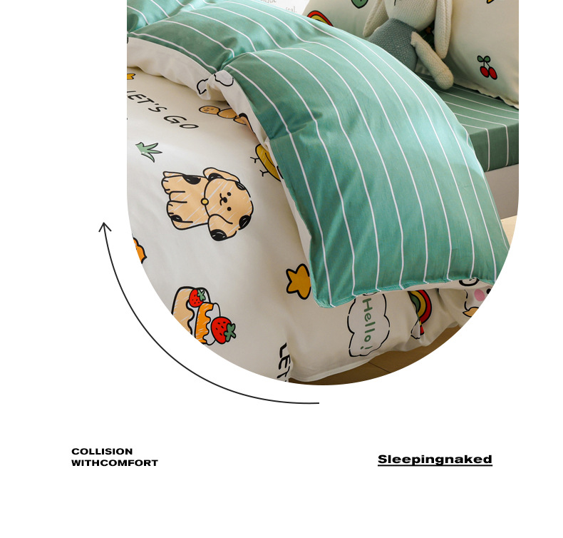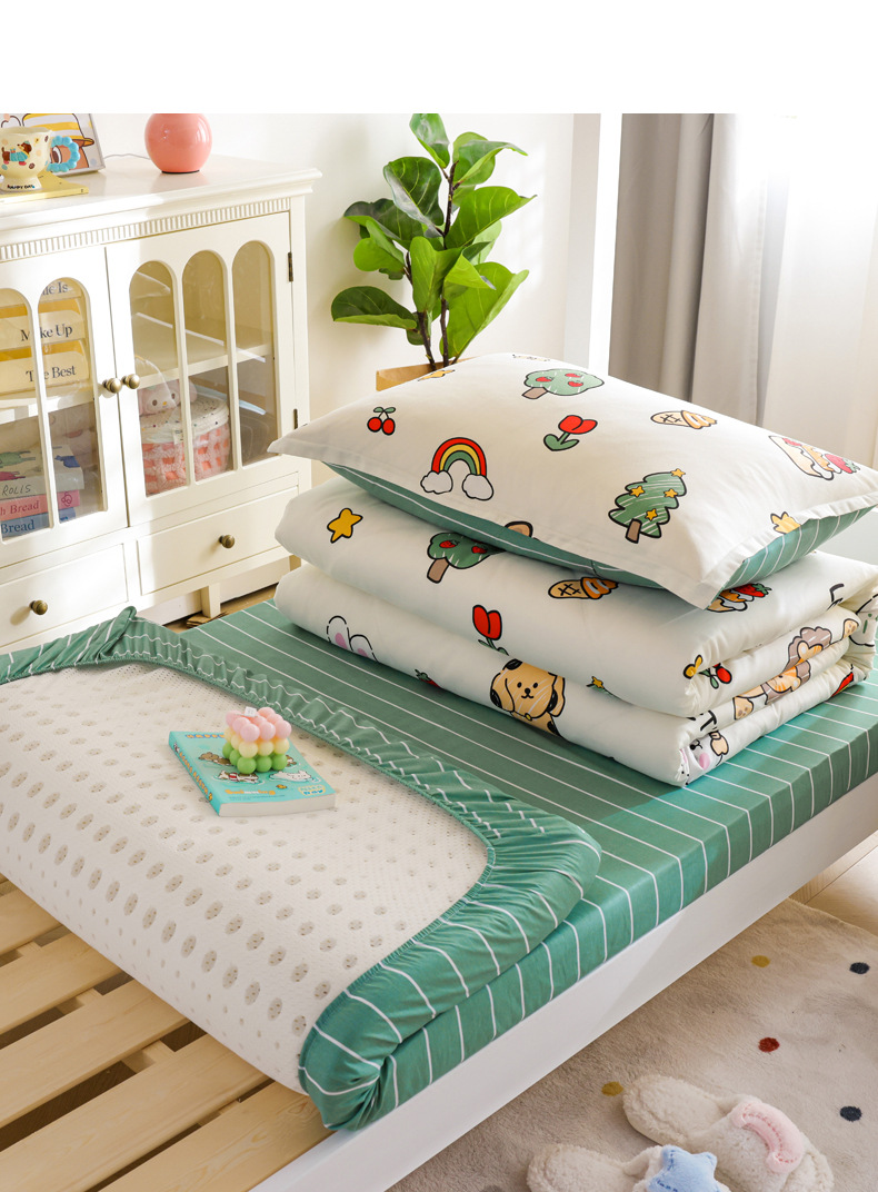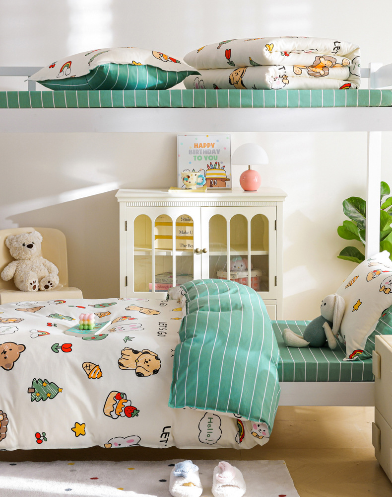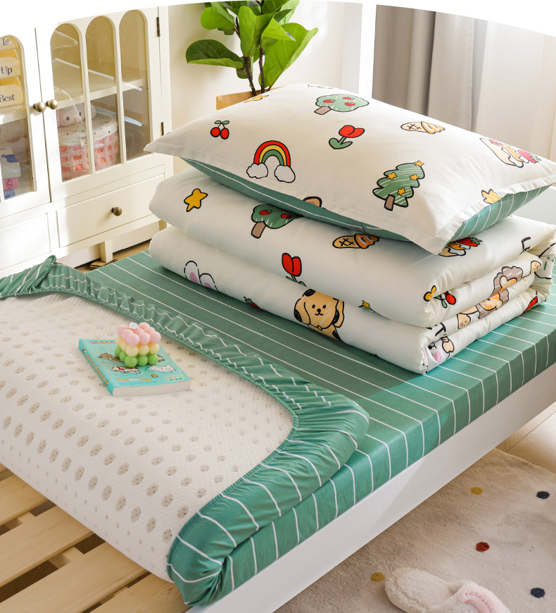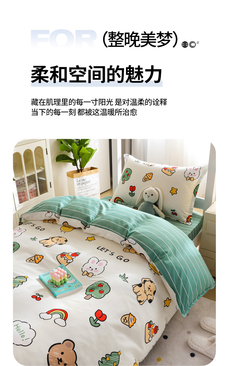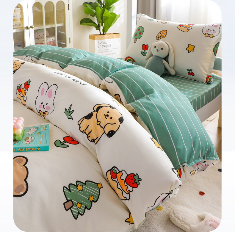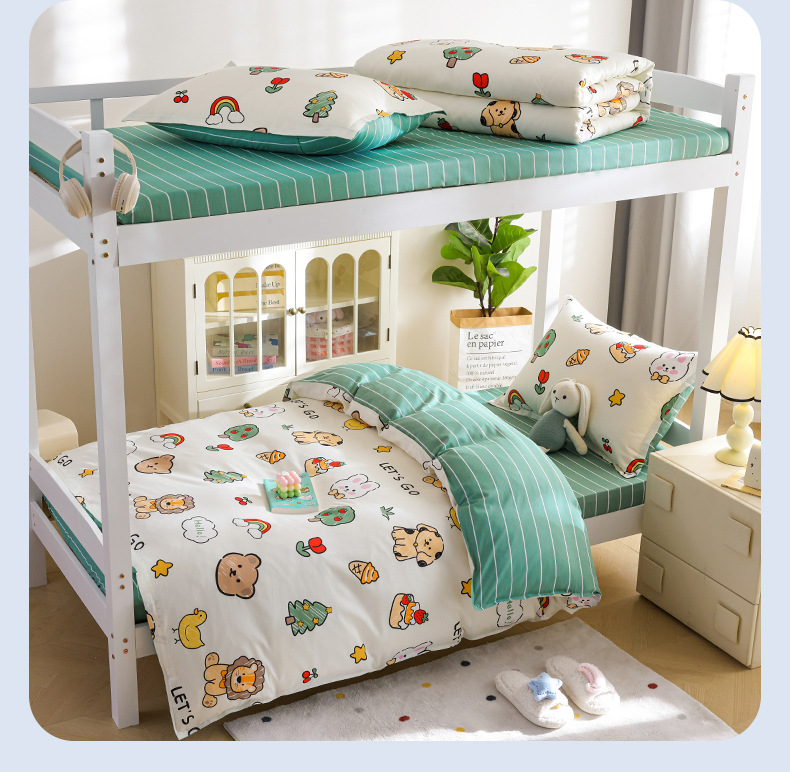Dormitorio de estudiantes Cama de algodón de tres piezas Cama individual de algodón Funda de edredón Sábana de cama Juego de cuatro piezas Dibujos animados para niños