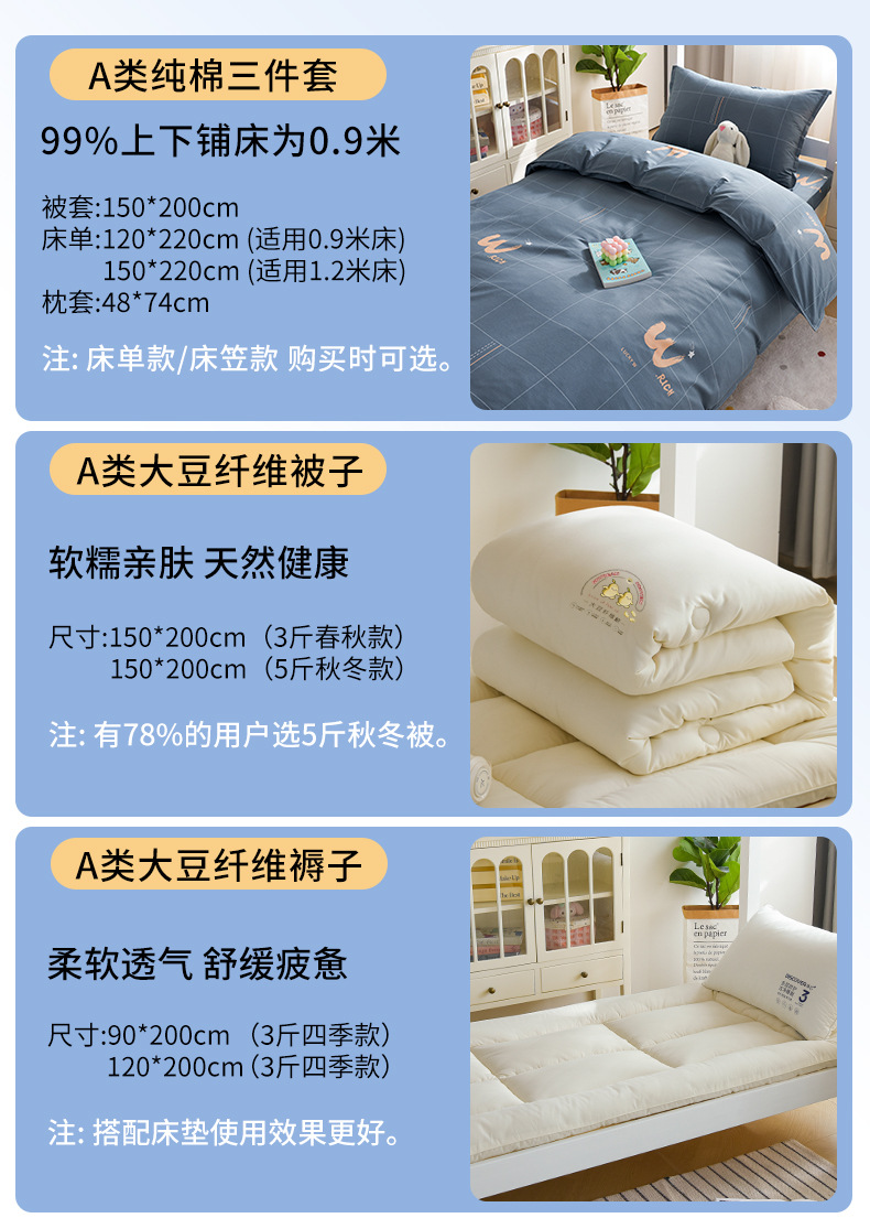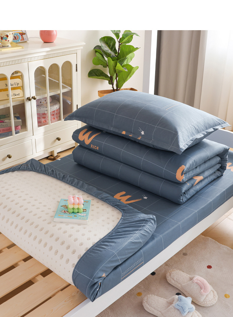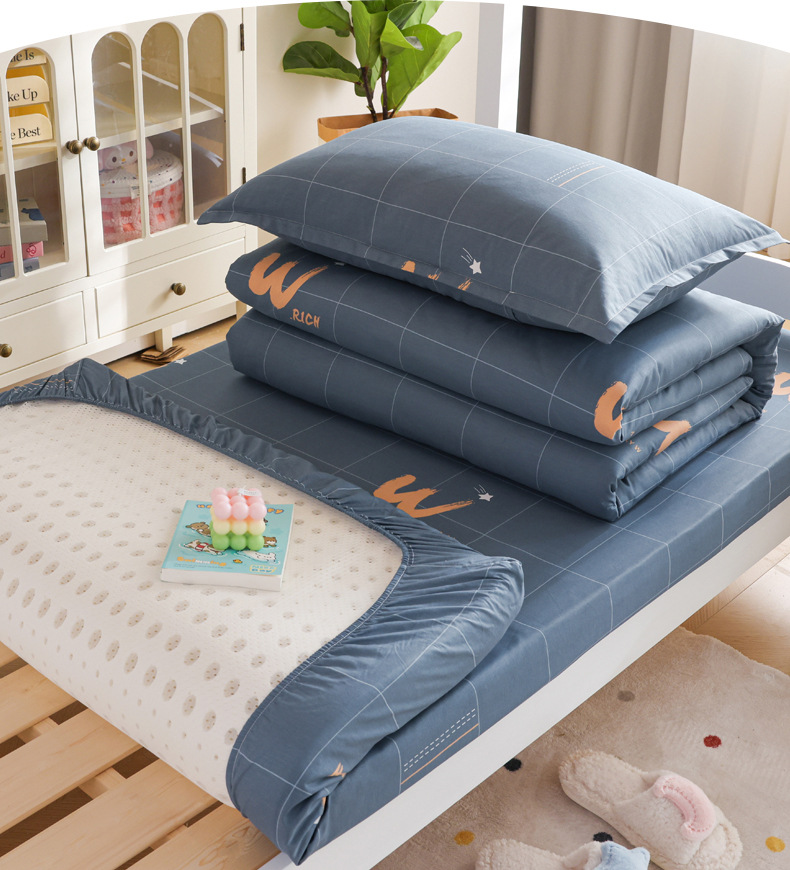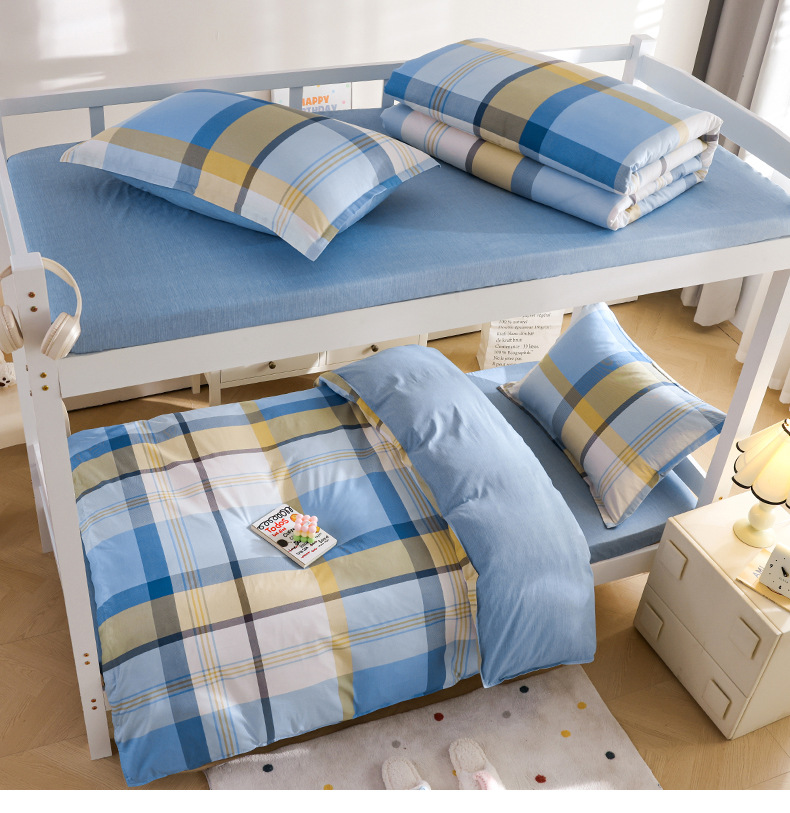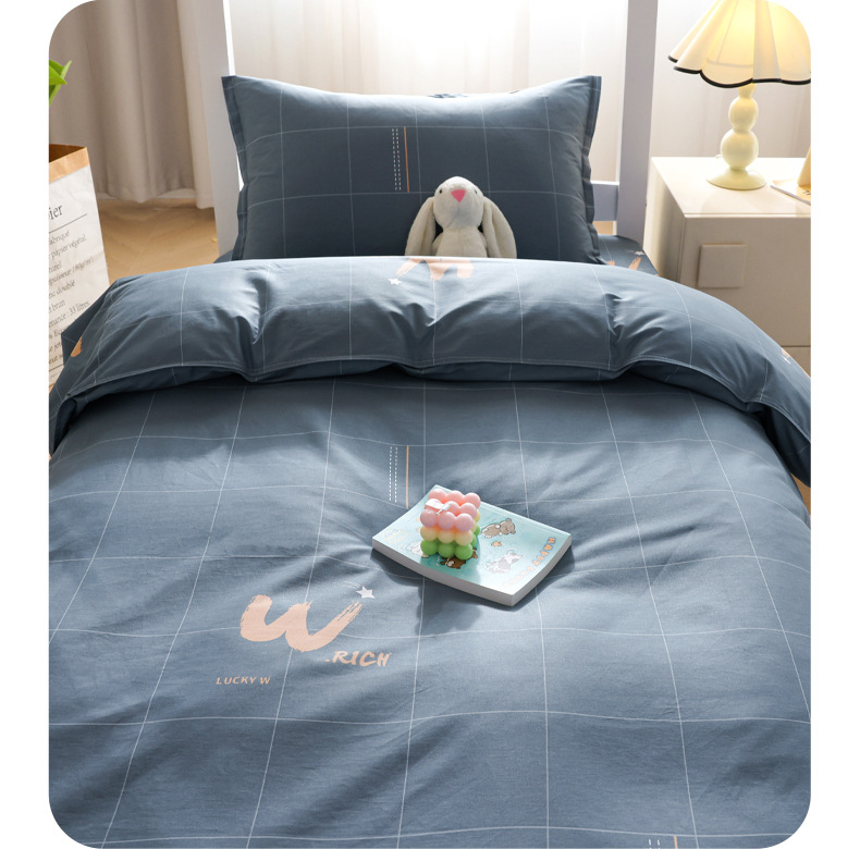 Juego de cama de dormitorio de tres piezas para estudiantes universitarios, sábana de algodón de algodón, edredón, juego completo de edredón
