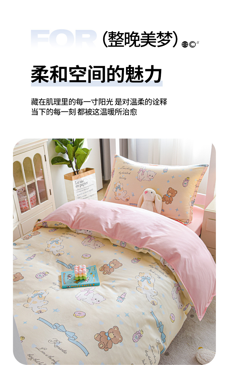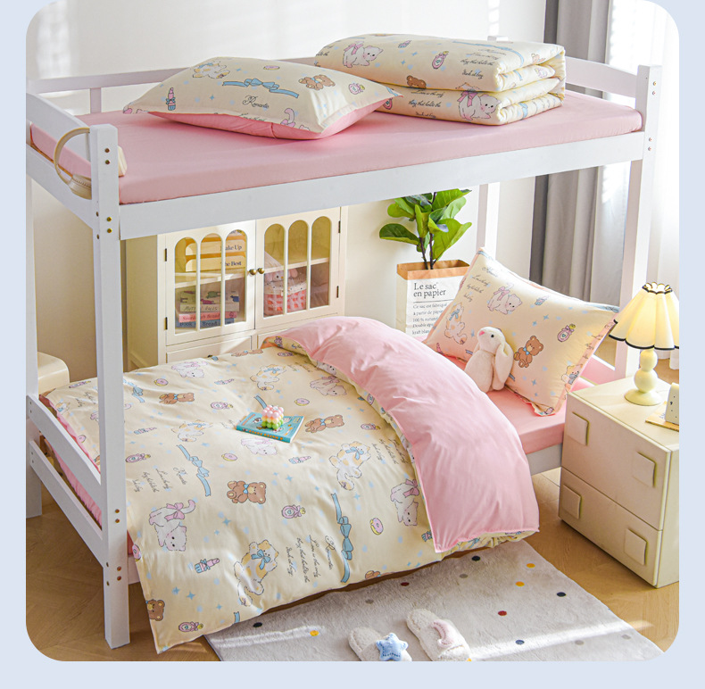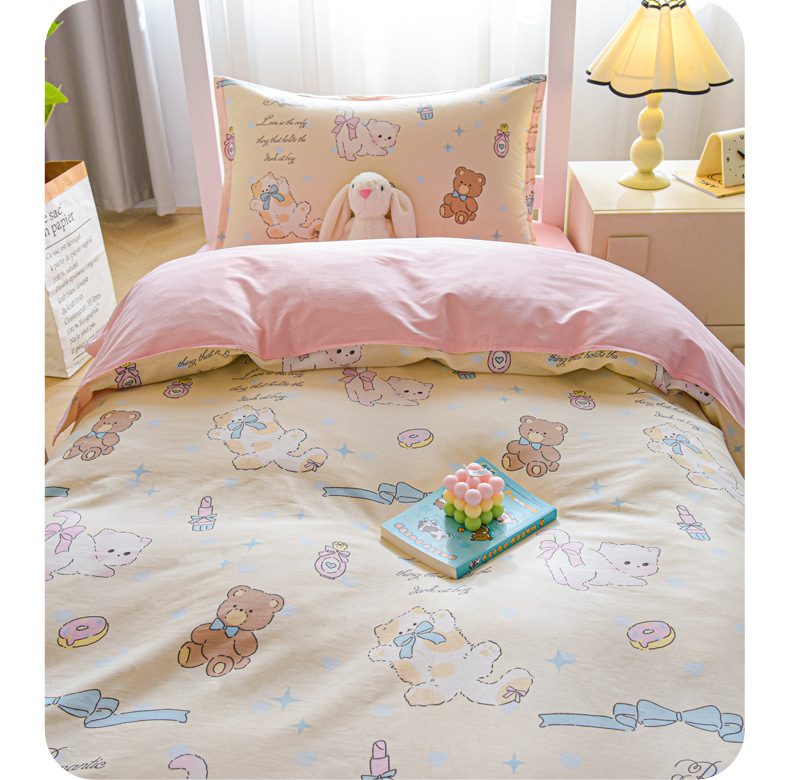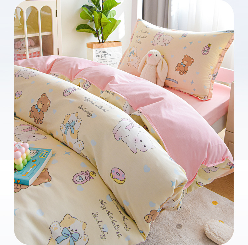 Dormitorio de estudiantes universitarios de tres piezas de cama de algodón puro, sábanas de cama de algodón, sábanas de dormitorio, cuatro piezas de dibujos animados