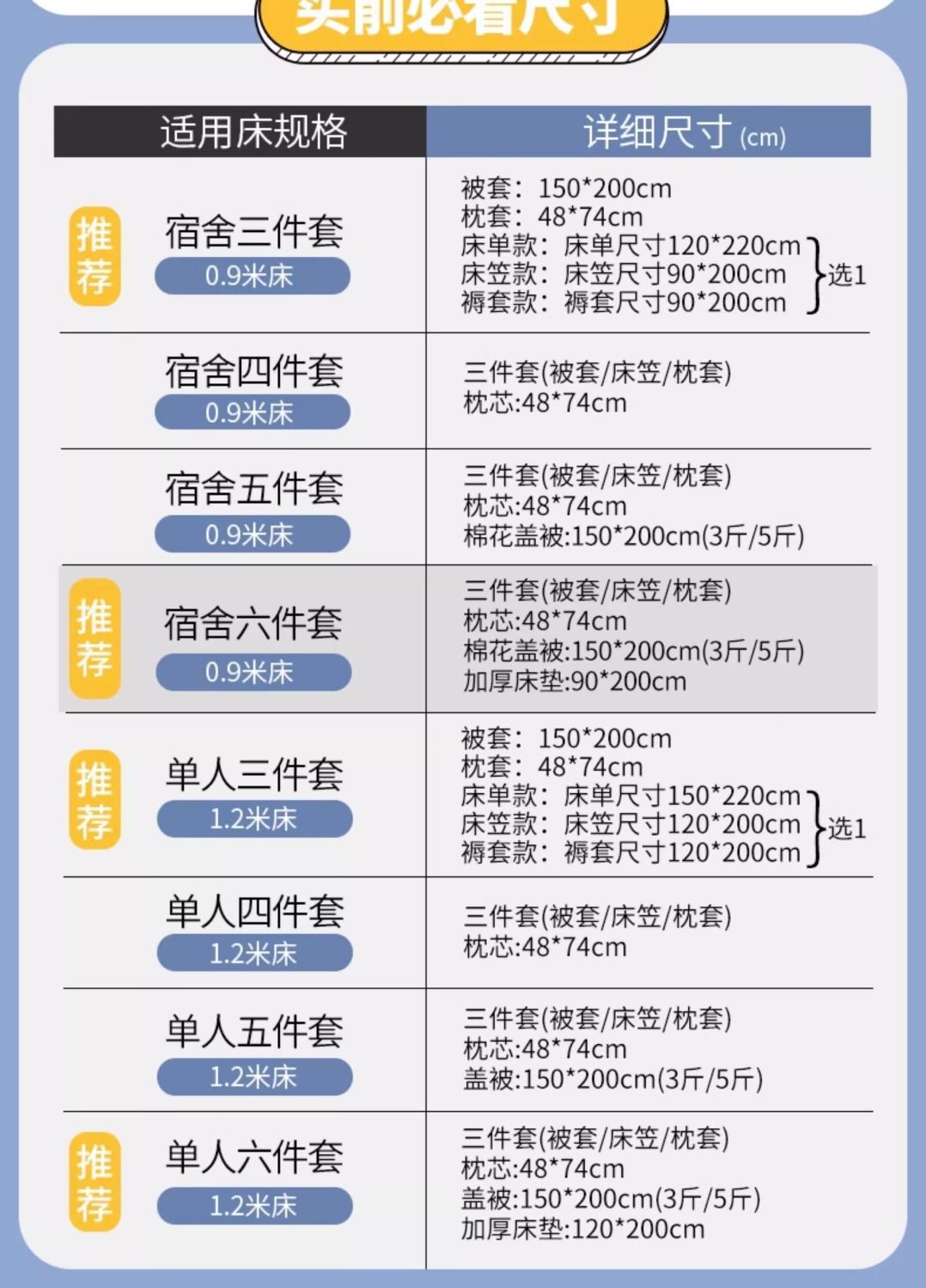 | Especificaciones de tamaño | Juego de tres piezas de cama de 0,8 m [80x190],Sombrilla de cama de 0,9 m de tres piezas [Sombrilla de cama 90x200],Juego de sábanas de tres piezas de 0,9 m [sábanas 120x220],Juego de tres piezas para colchones de 0,9 m [juego de colchones 90x200],Juego de cama de cuatro piezas (juego de almohada de cama de tres piezas 90x200),Juego de colchón de cinco piezas (colchón grueso con núcleo de almohada de tres piezas con sábana),Juego de cinco piezas (3 kg de edredón de soja con núcleo de almohada de tres piezas de sábana 0.9),Juego de cinco piezas (edredón de soja de 5 kg con núcleo de almohada de tres piezas de sábana 0.9),Juego de seis piezas (colchón de edredón de soja de tres piezas con núcleo de almohada de 3 kg),Juego de seis piezas (colchón de edredón de soja de cinco kg con núcleo de almohada de tres piezas),Juego de seis piezas (colchón de edredón de algodón de 3 kg con núcleo de almohada de tres piezas),Juego de seis piezas (colchón de edredón de algodón de 5 kg con núcleo de almohada de tres piezas),Juego de siete piezas de edredón para niños y madres (2 piezas de edredón de soja para colchones de cinco piezas) |