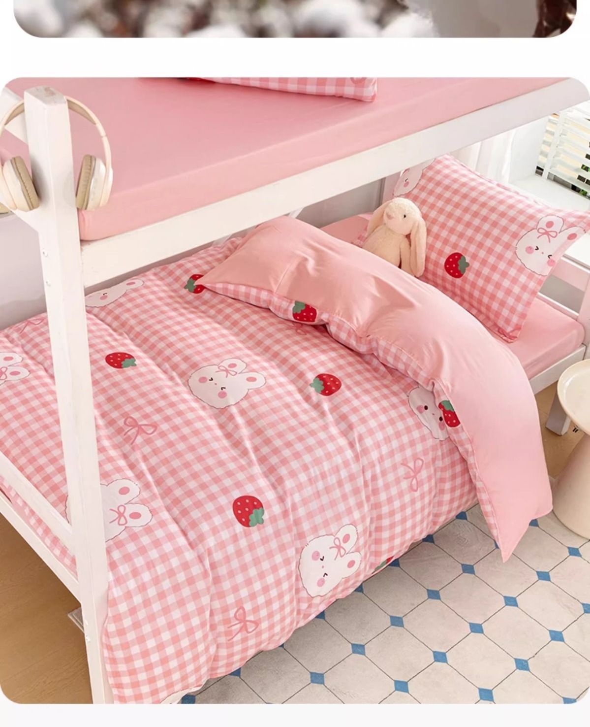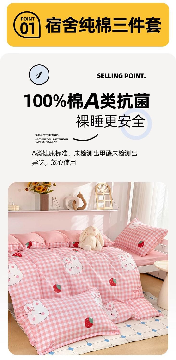 Dibujos animados de algodón 100% algodón dormitorio de estudiantes cama de tres piezas tipo sábana dormitorio ropa de cama juego completo conjunto de mujeres