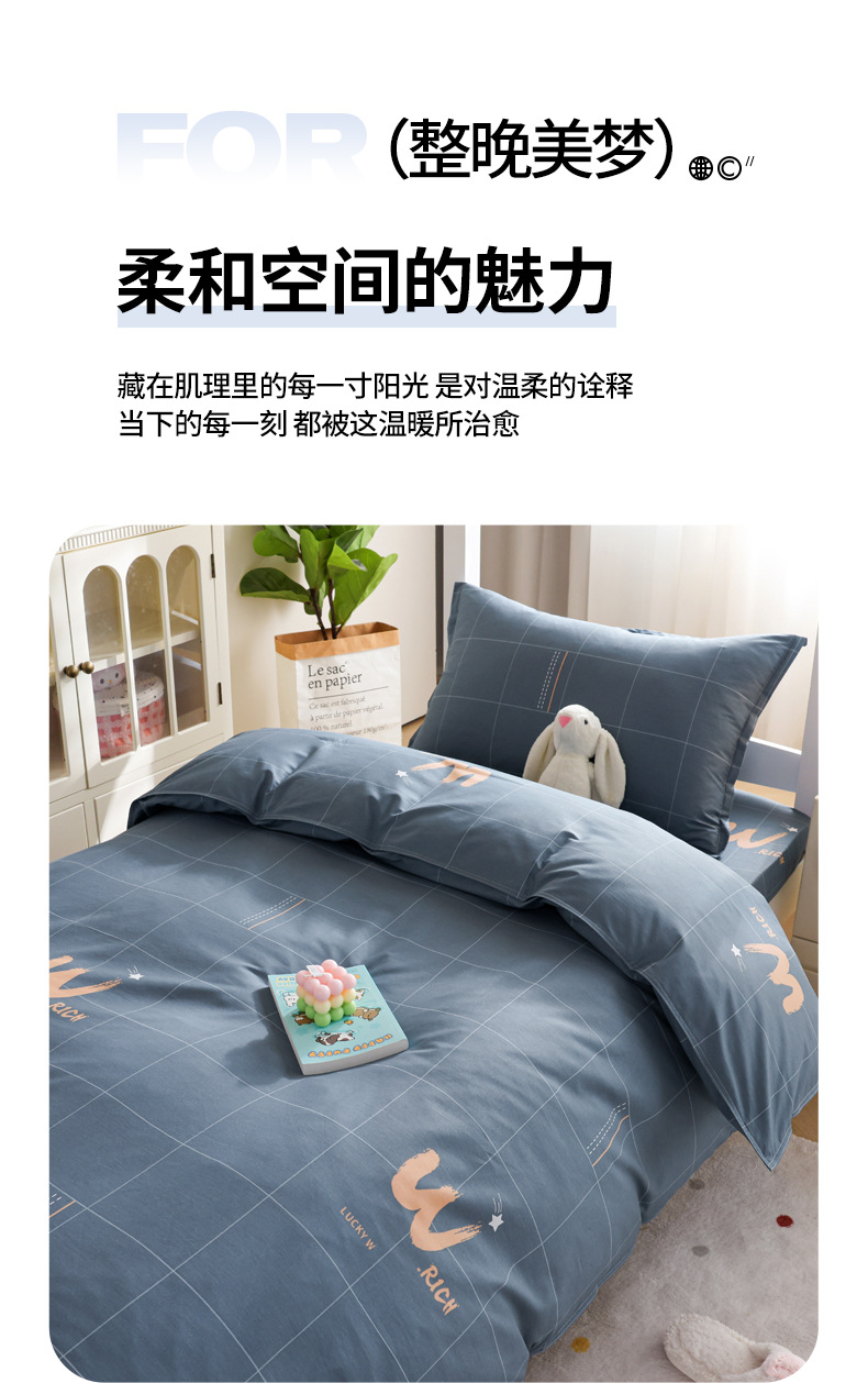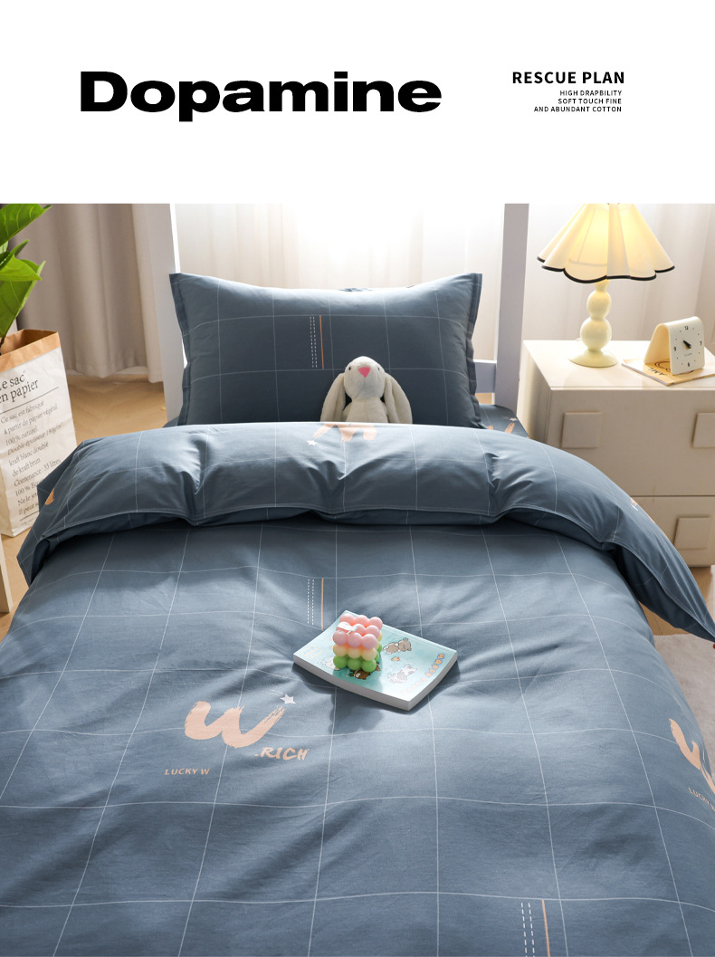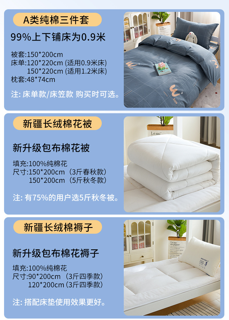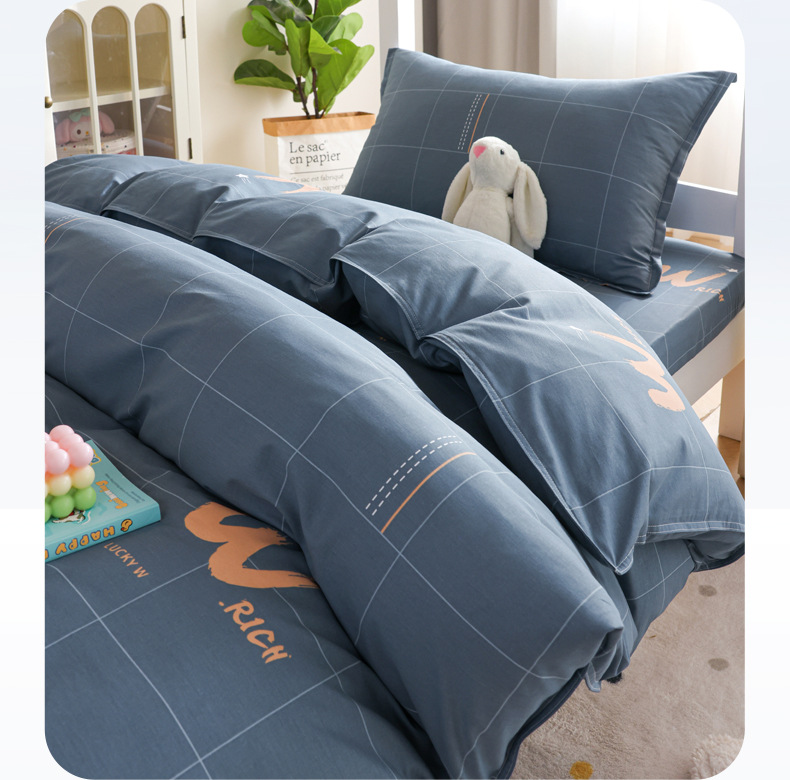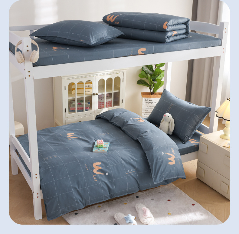 Juego de cama de dormitorio de estudiantes universitarios de tres piezas, sábanas de algodón de algodón, edredón, un juego completo de ropa de cama de seis piezas
