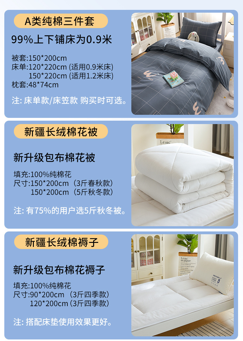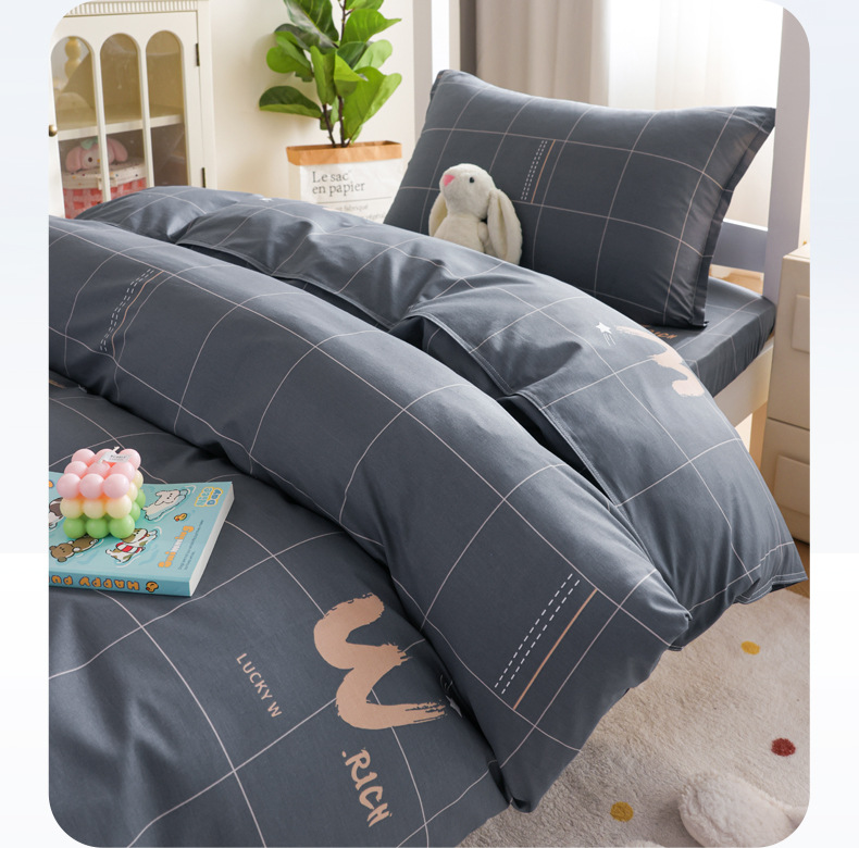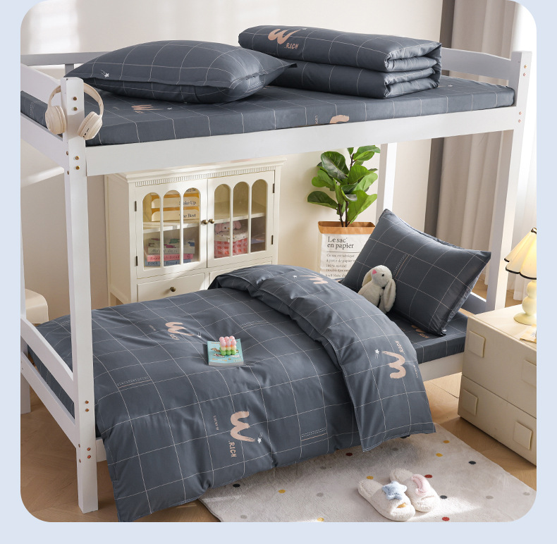 Juego de cama de dormitorio de estudiantes universitarios de tres piezas 100 sábanas de algodón de algodón, edredón, juego completo, juego completo de seis piezas 3