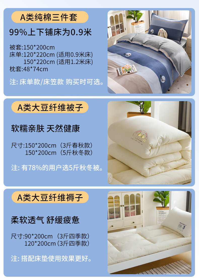 Otoño y invierno: cama de 0,9 m de cinco piezas [sábanas de tres piezas + núcleo de almohada + edredón de soja de 5 kg]