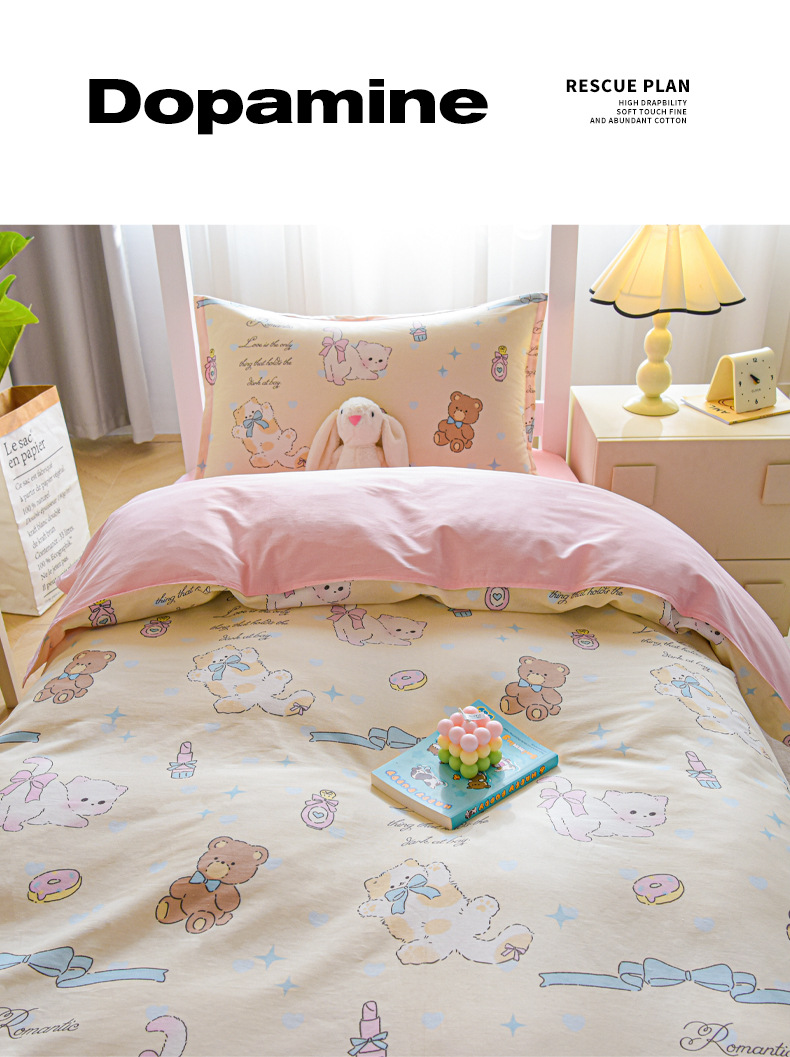 Modelo de sábanas: 0,9 m cama de tres piezas [sábanas + colcha de cama + funda de almohada] (camas de 0,8 ~ 0,9 m de uso general)