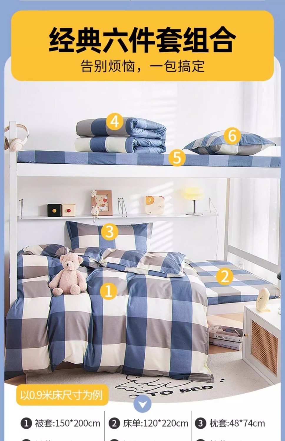 Set de seis piezas de otoño y invierno de 0,9 m (3 <unk> colchón + 5 <unk> edredón)