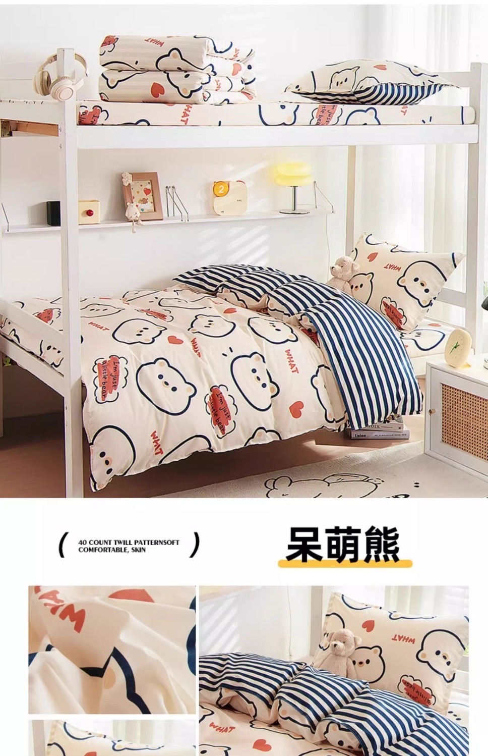 1.2m cama de tres piezas (colcha de cama + sábanas + almohada)