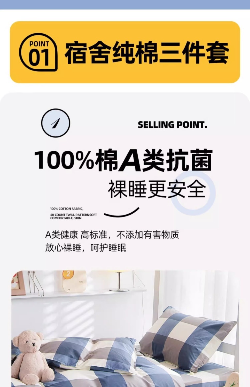 Set de tres piezas de cama de 0,9 m (cuchilla + sábanas + funda de almohada)