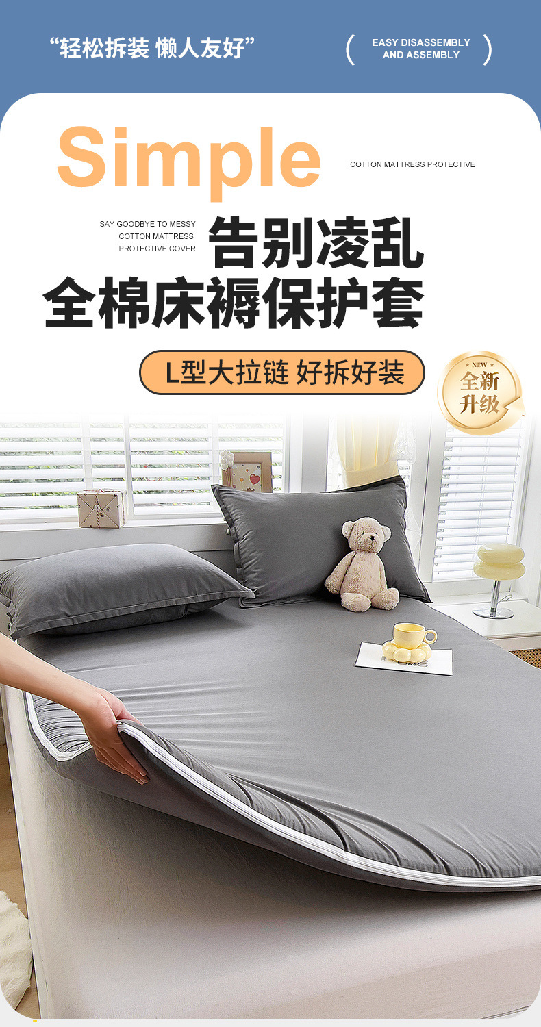 Funda protectora de colchón de algodón Funda de colchón de algodón con cremallera todo incluido Funda de colchón de algodón 150x180x200 dormitorio de estudiantes individual