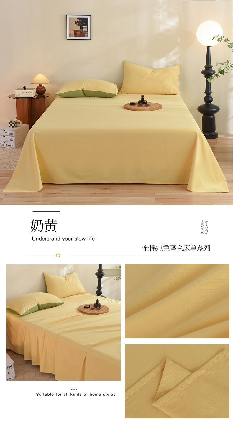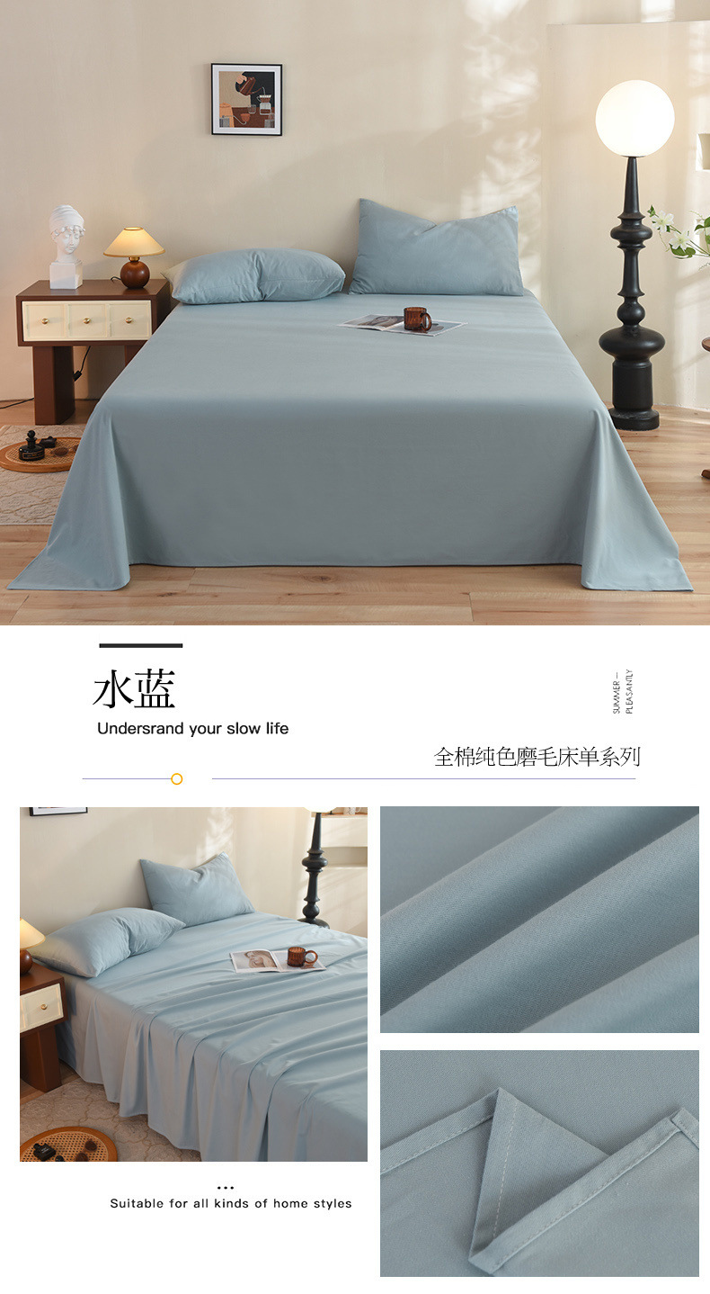 Sábanas de algodón de otoño e invierno, una sola pieza, gruesa 100 algodón, clase A, nuevo dormitorio de color sólido, juego individual