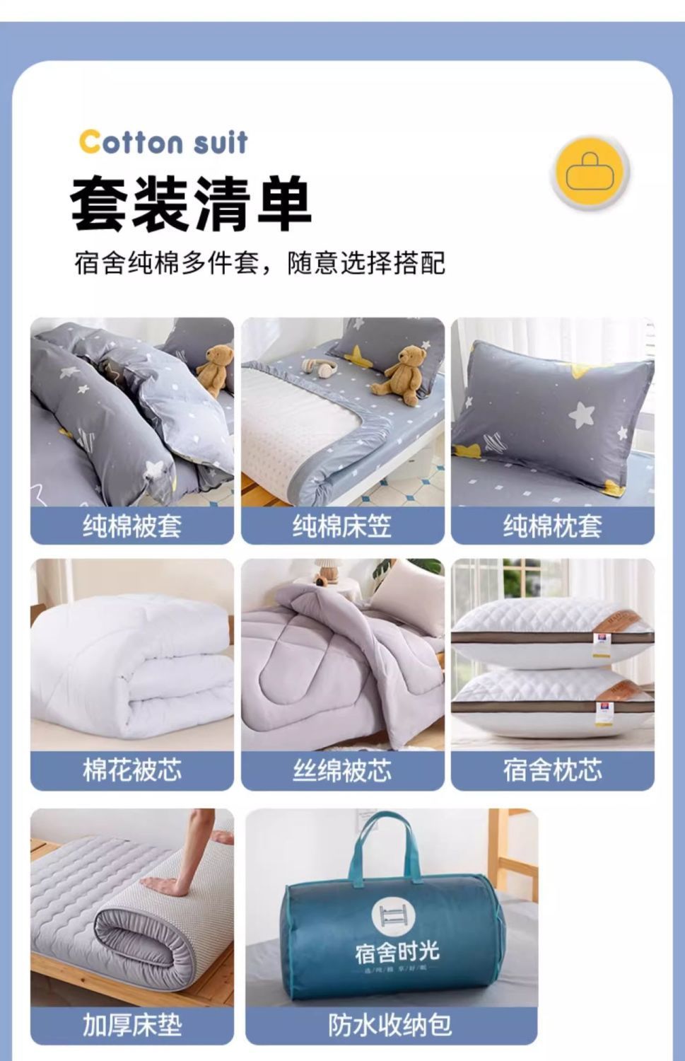 Dormitorio de estudiantes 0,9 m 100 funda de edredón de algodón de tres piezas 90x190 funda de edredón de algodón juego de cuatro piezas seis