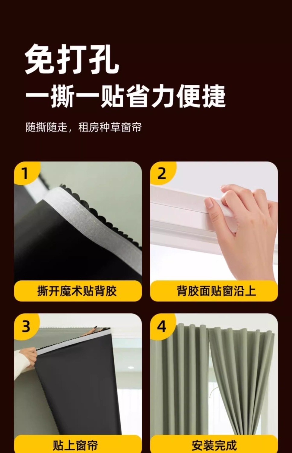 Cortina de ventana pequeña, sombra completa, velcro adhesivo, cortina de protección solar, dormitorio de estudiantes, baño, cortina simple