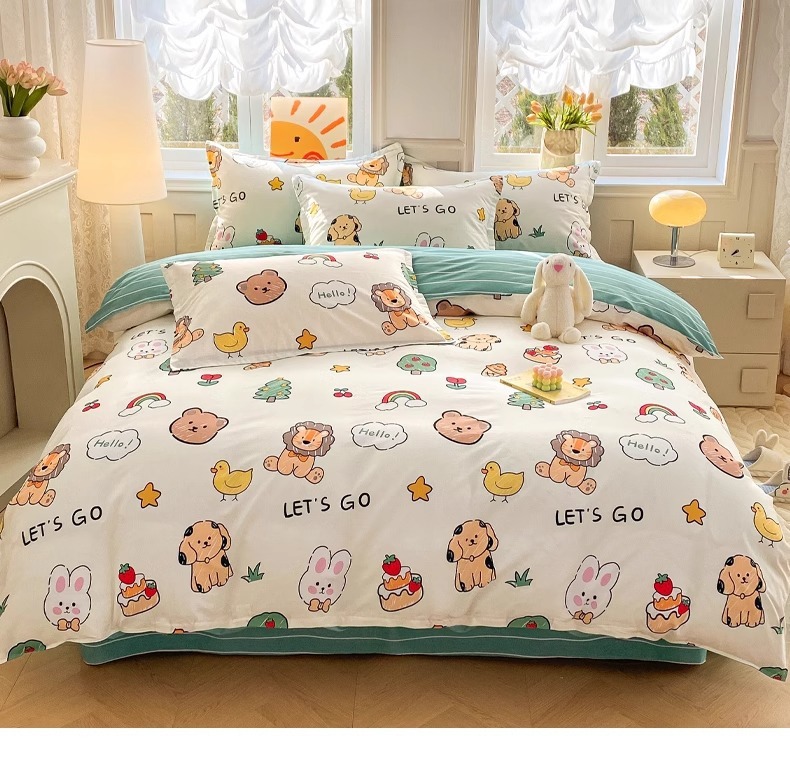 2025 nuevo traje de cuatro piezas de algodón de clase A ropa de cama de algodón para niños 4 sábanas fundas de edredón conjunto de tres piezas