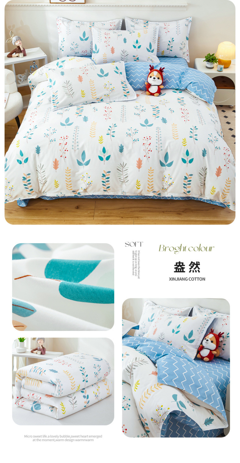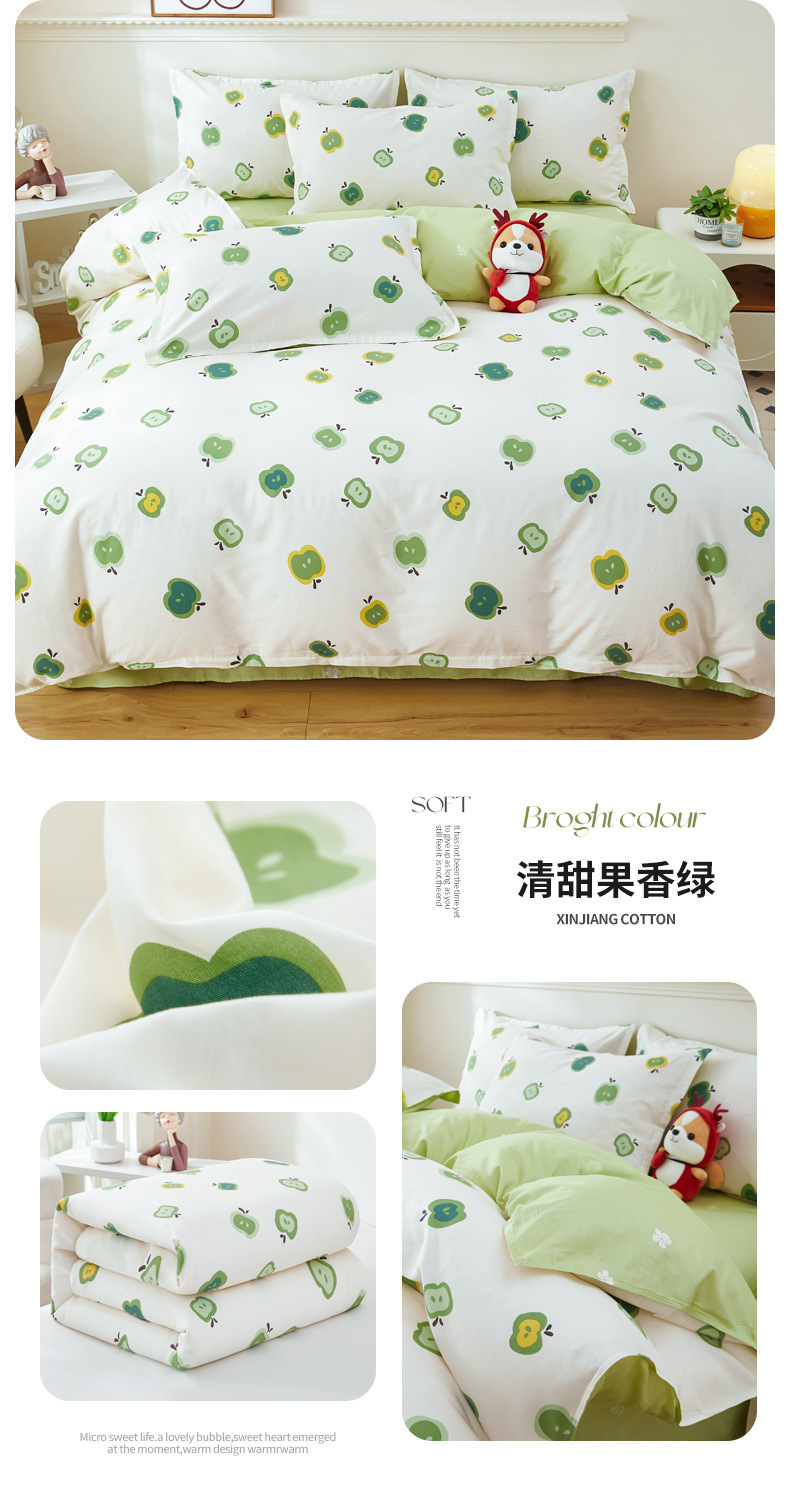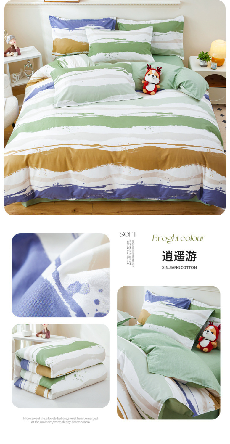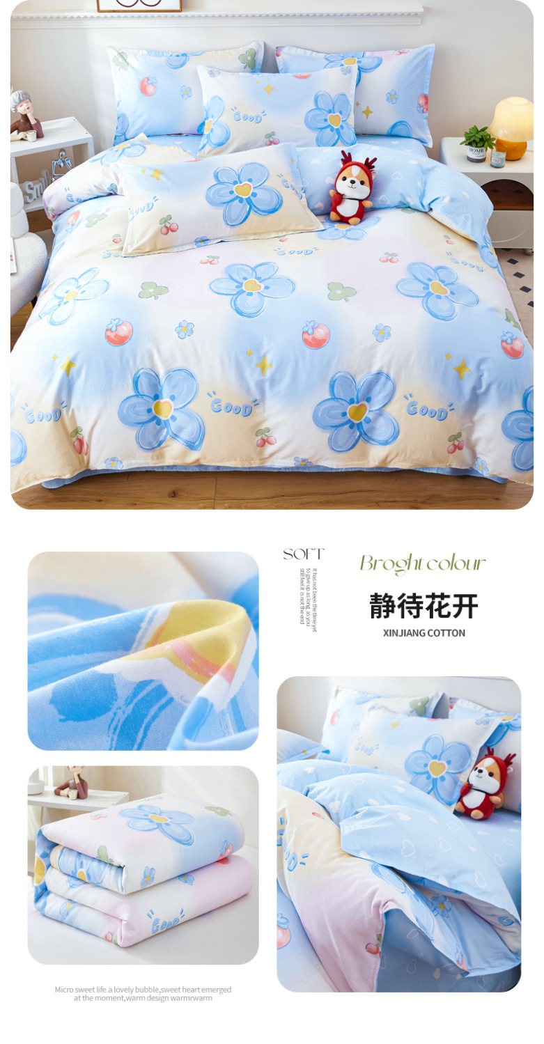 2025 nuevo traje de cuatro piezas de algodón puro ropa de cama de algodón sábana funda de edredón estilo sábana dormitorio de estudiantes traje de tres piezas
