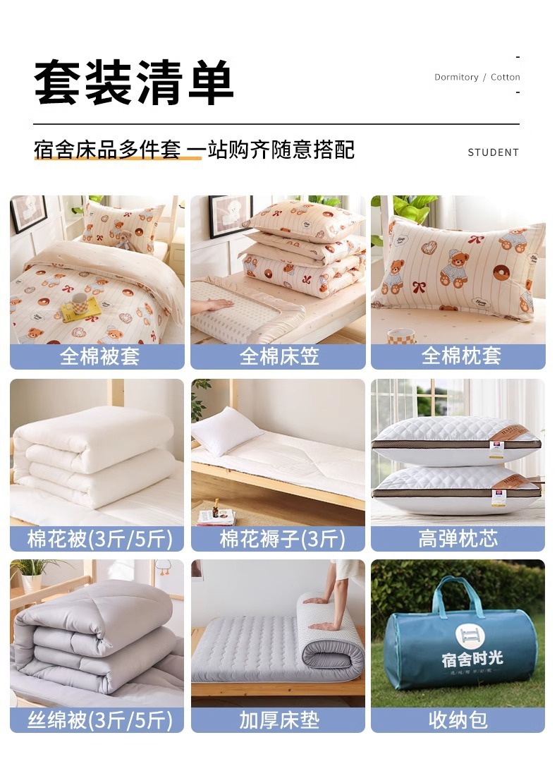 [Estilo de cama] Juego de seis piezas de cama 0.9 (colchón de edredón de algodón de 3 kg)