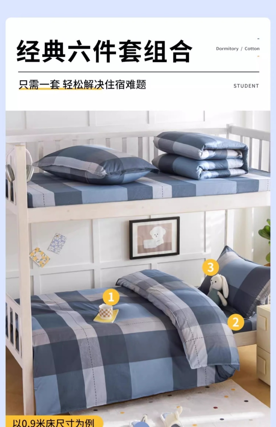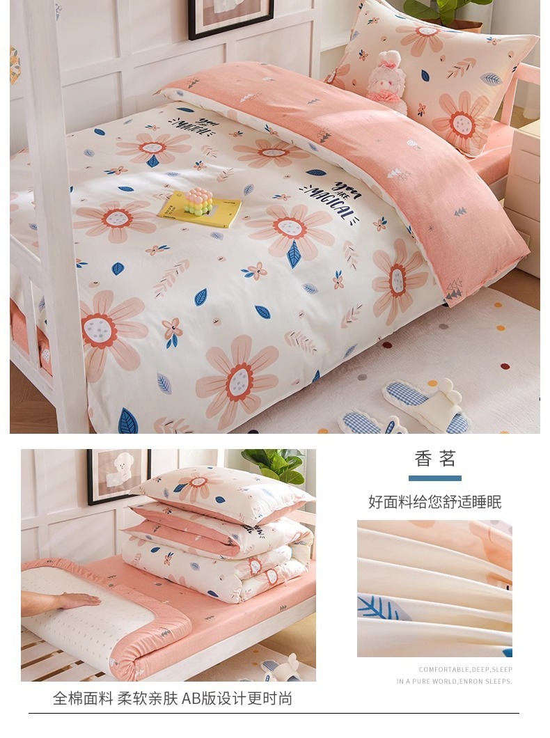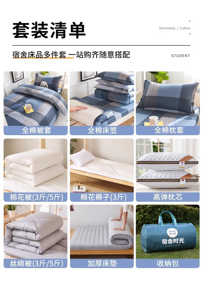 Ropa de cama de algodón de algodón de tres piezas Ropa de cama de dormitorio de estudiantes universitarios 90x200 individual 0,9 m funda de edredón de sábana seis