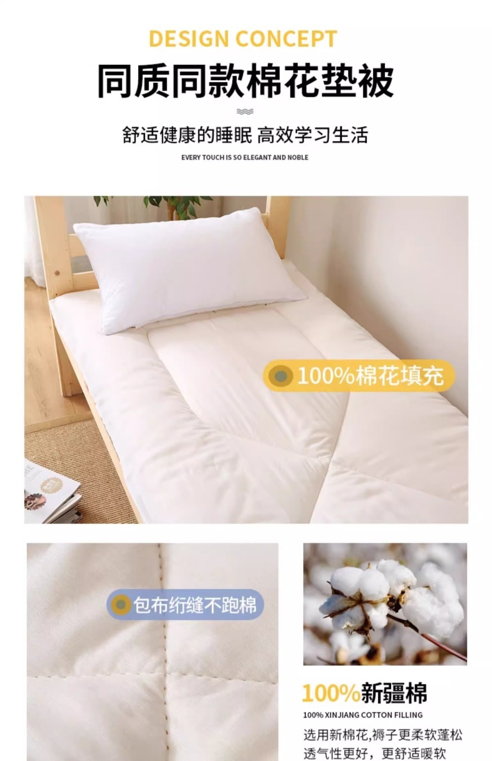 [Estilo de cama] 0.9 cama de tres piezas colchón de 5cm de espesor