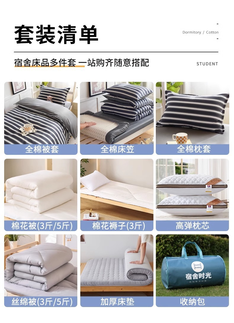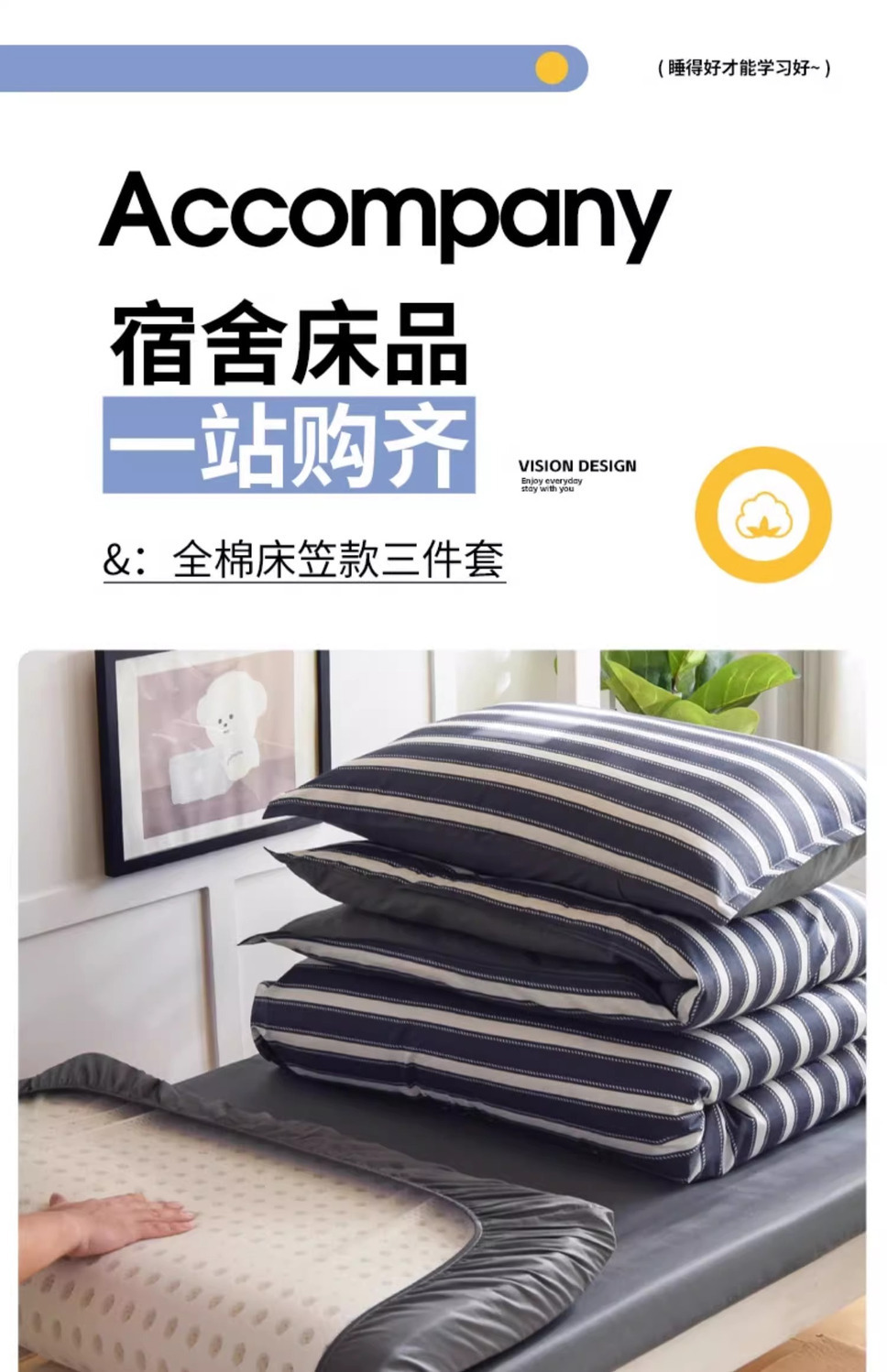 Dormitorio de estudiantes cama de algodón, cama de tres piezas, ropa de cama de dormitorio de estudiantes universitarios, sábanas de algodón, colchón para hombres