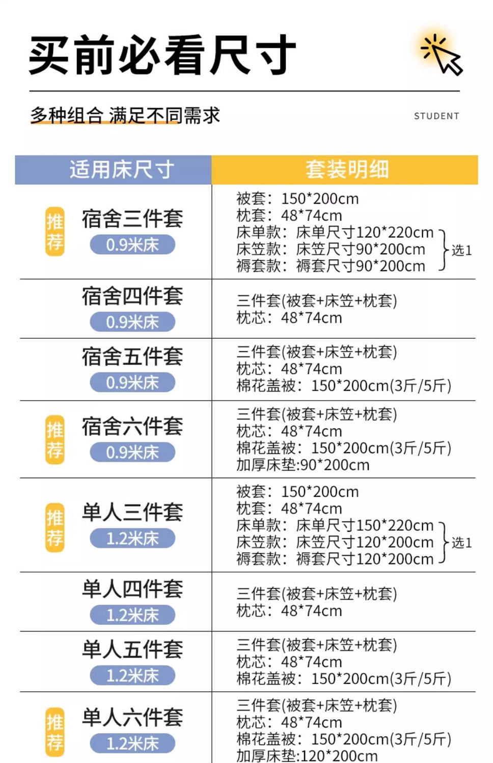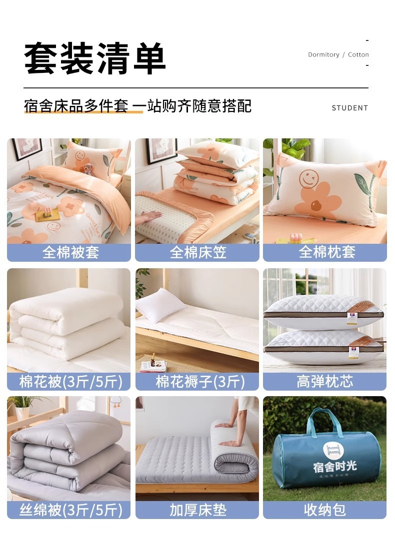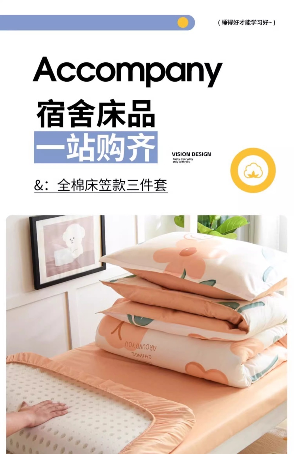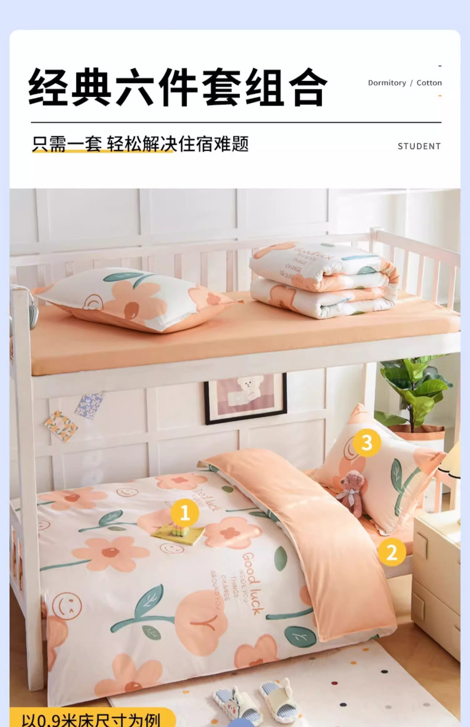 Ropa de cama de algodón de tres piezas, ropa de cama, dormitorio de estudiantes universitarios, sábana de algodón individual, funda de edredón, juego de seis piezas para niñas