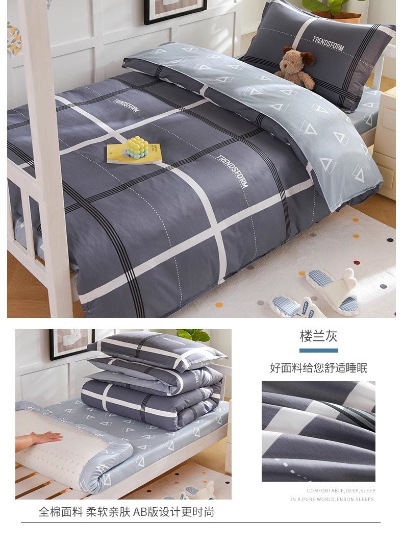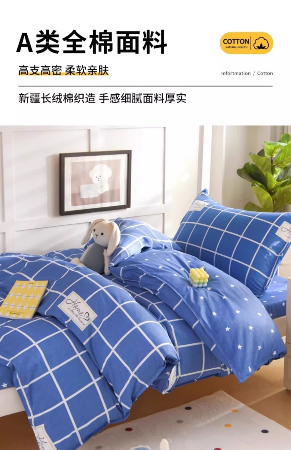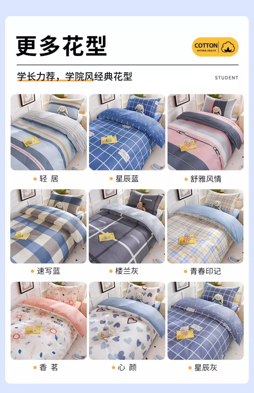 Ropa de cama de algodón de tres piezas Ropa de cama Dormitorio de estudiantes universitarios Ropa de cama de algodón Funda de edredón Cama individual de cuatro piezas de seis