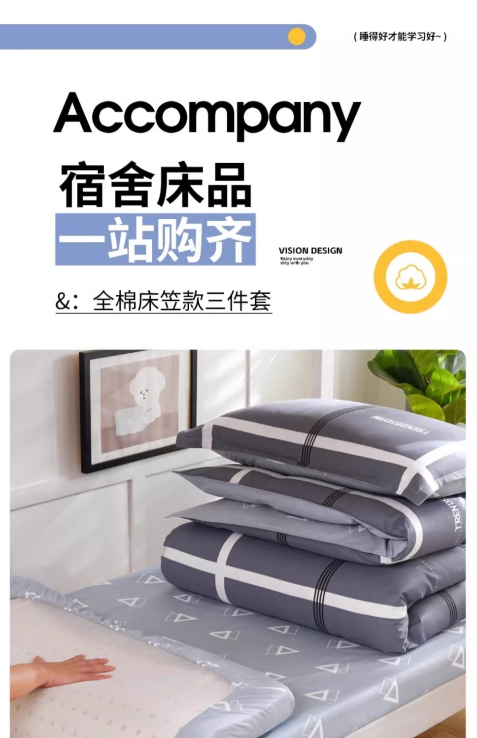 [Estilo de cama] 0.9 cama de tres piezas colchón de 5cm de espesor
