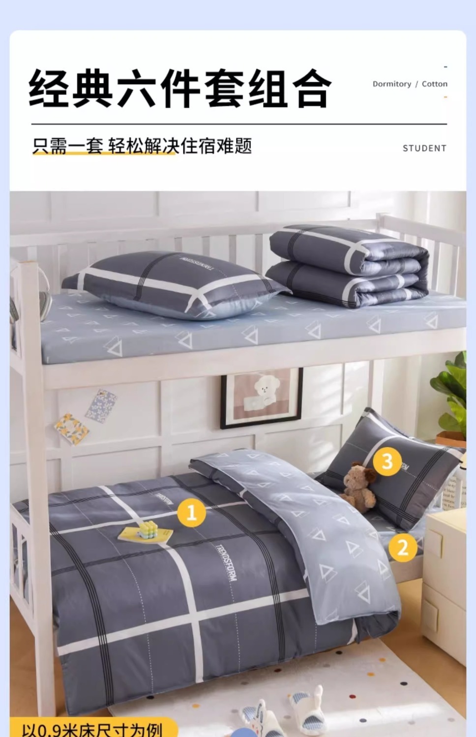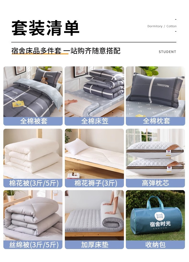 [Estilo de cama] Juego de seis piezas de cama 0.9 (colchón de edredón de algodón de 3 kg)