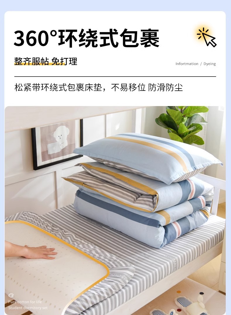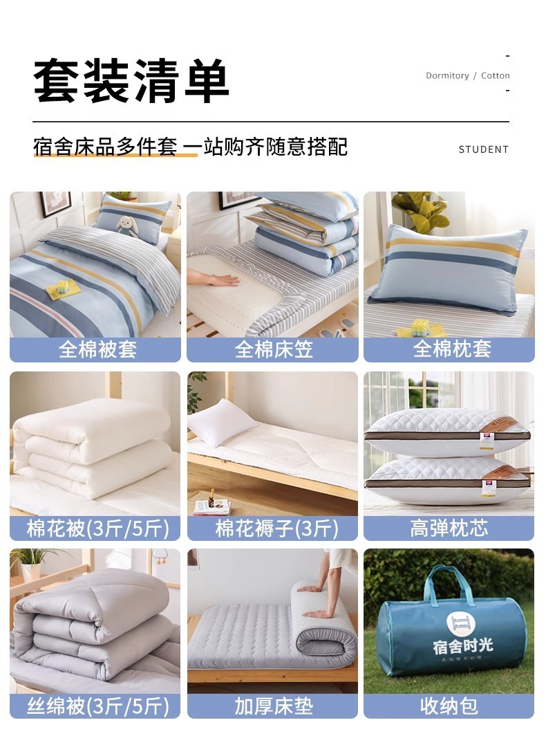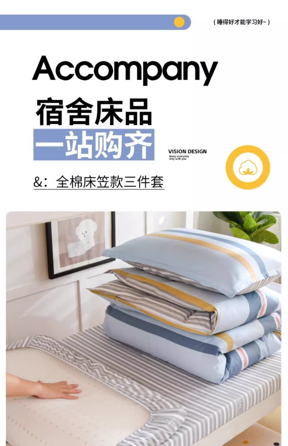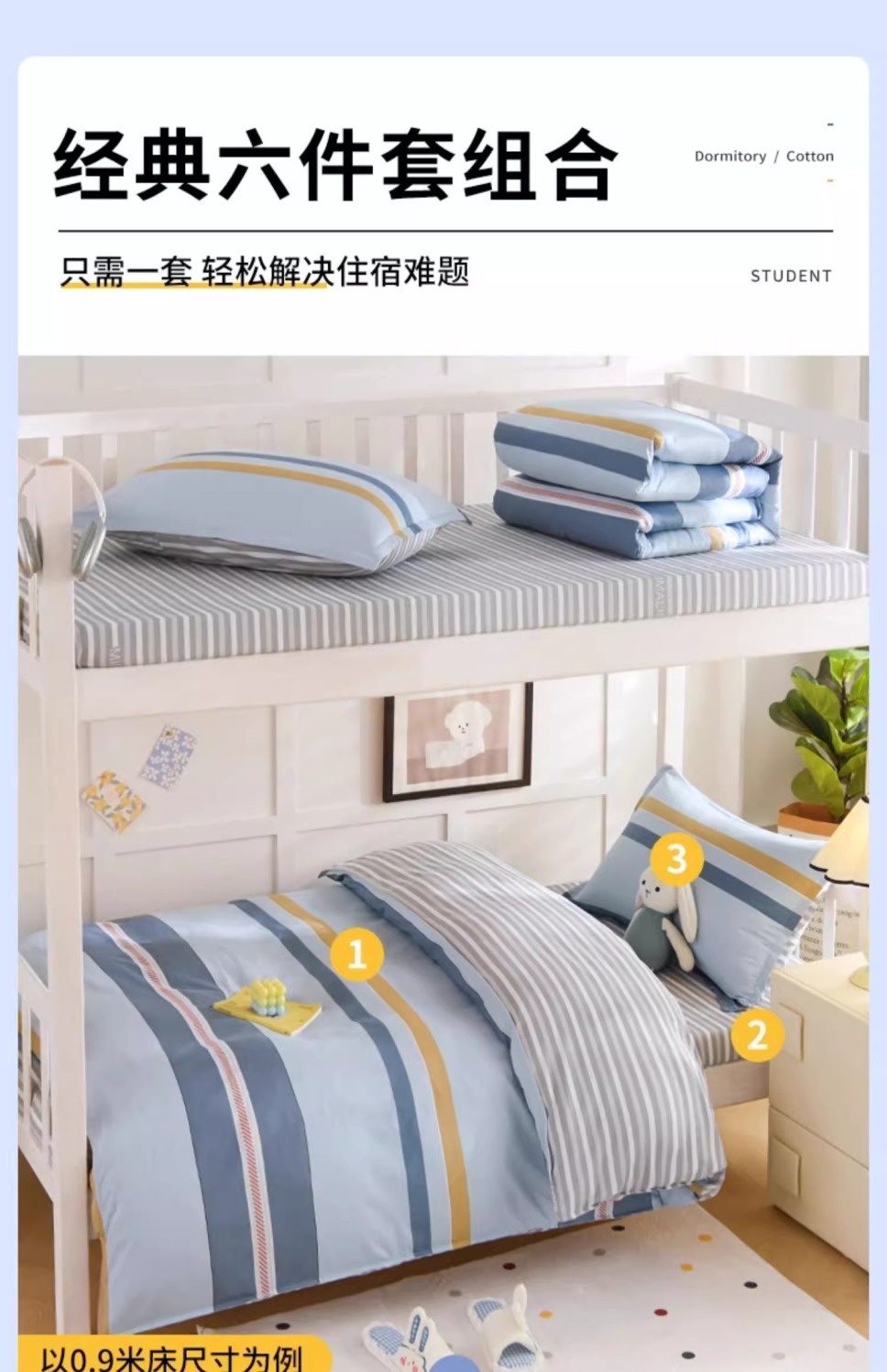 Juego de cama de dormitorio de estudiantes de algodón de tres piezas para estudiantes universitarios, sábana de algodón, funda de edredón, cama, colchón de dormitorio, juego de seis piezas
