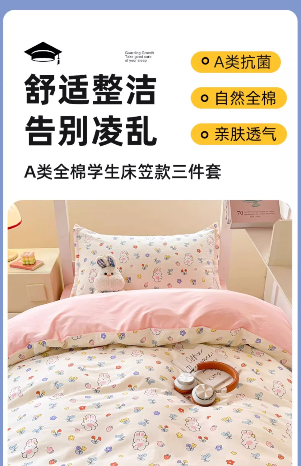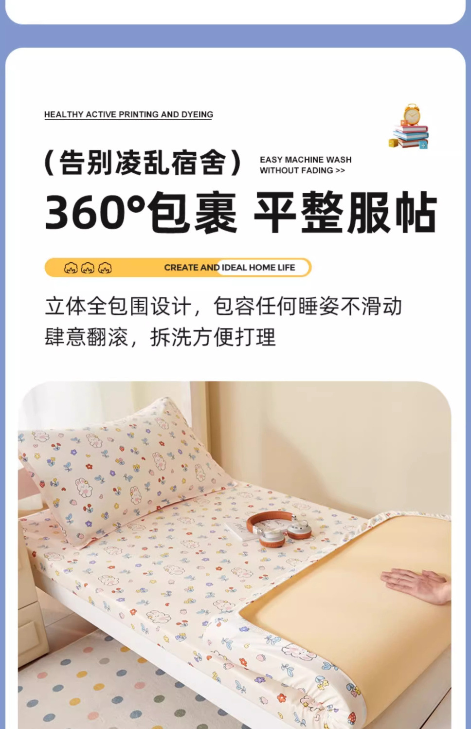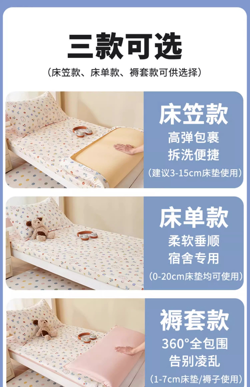 [Modelo de sábanas] 0.9 cama de tres piezas + almohada central