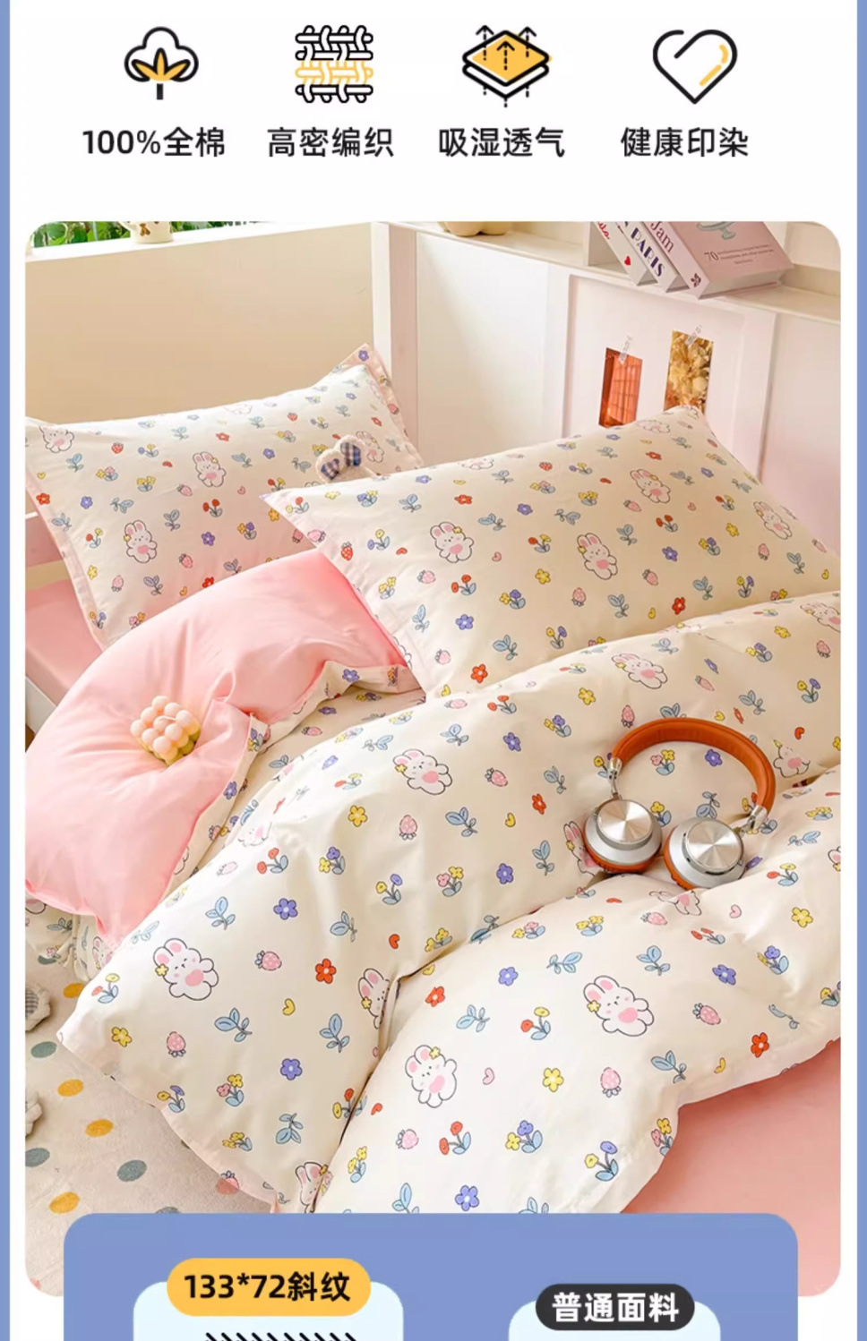 [Sábanas] 1.2 Camas de tres piezas (colcha de cama + sábanas + funda de almohada)