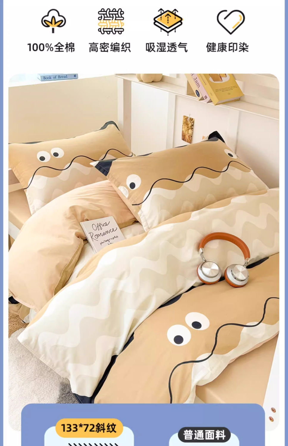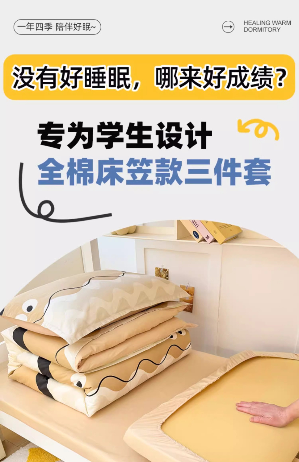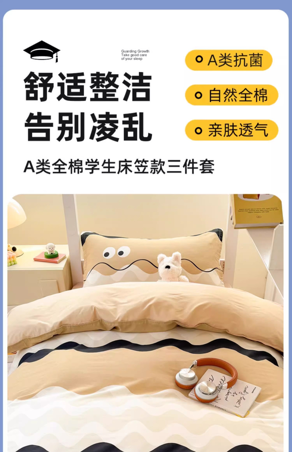 Juego de cama de dormitorio de estudiantes de tres piezas 100% algodón sábana de algodón tipo 90x200 individual 0,9 m funda de edredón seis