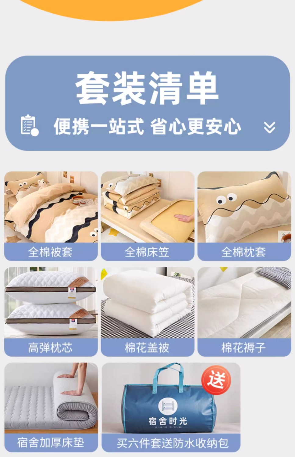 [Estilo de cama] Juego de seis piezas de cama 0.9 (colchón de edredón de algodón de 3 kg)