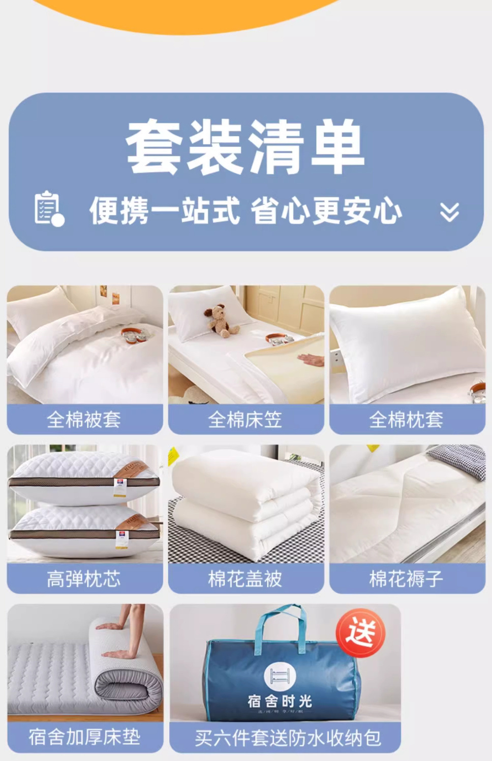 [Estilo de cama] Juego de seis piezas de cama 0.9 (colchón de edredón de algodón de 3 kg)