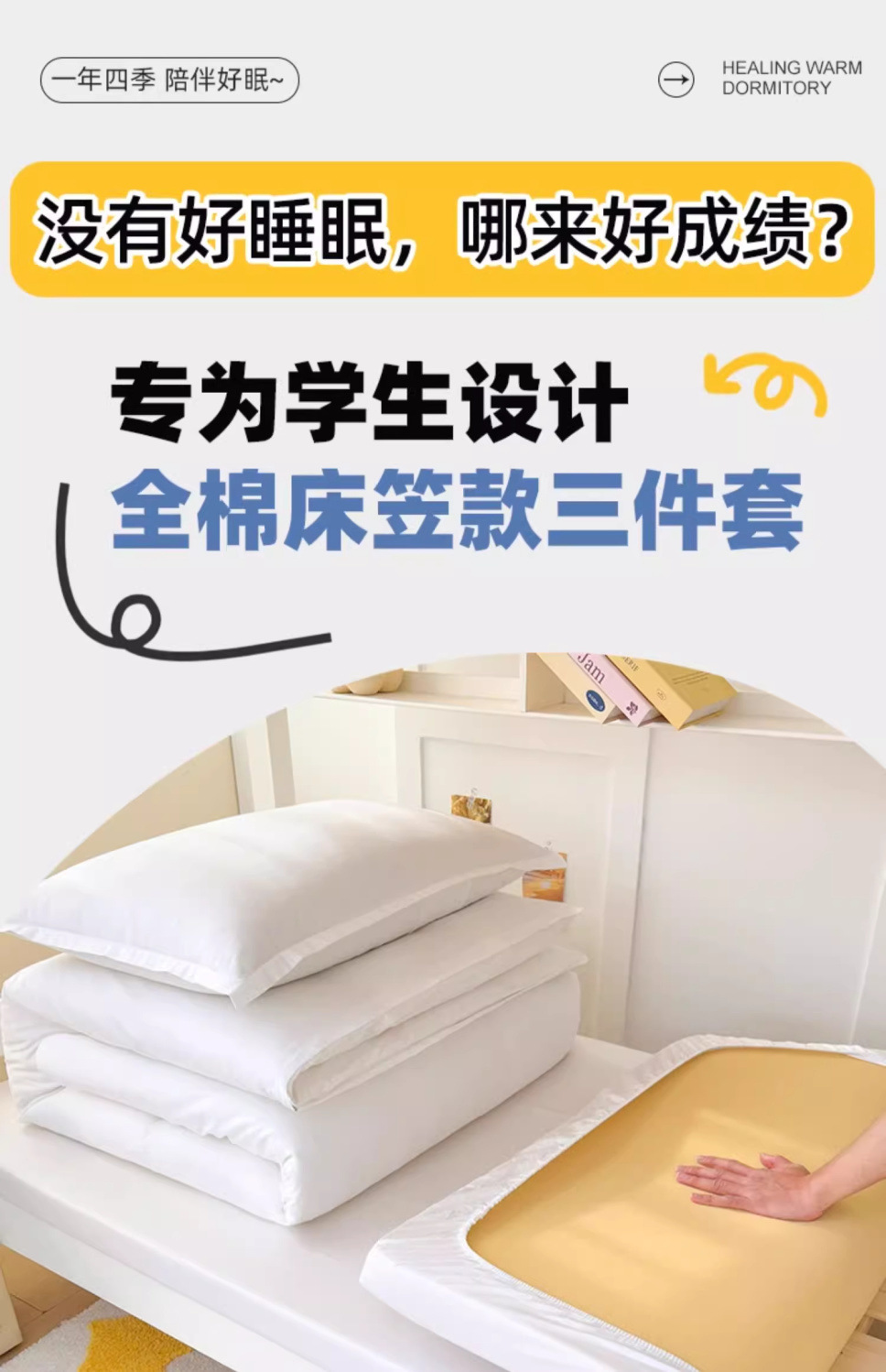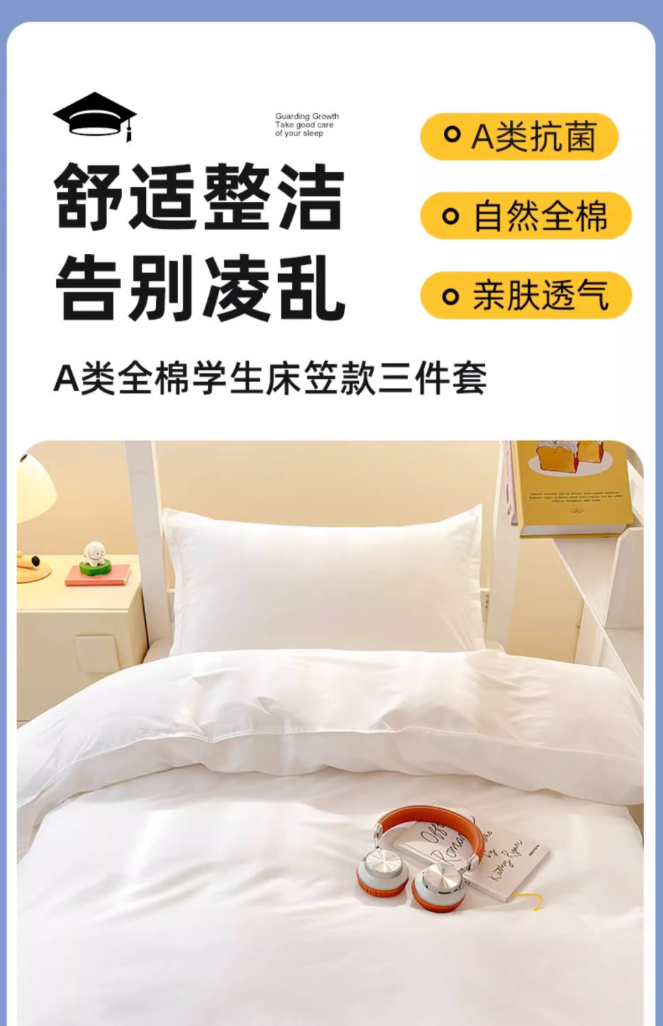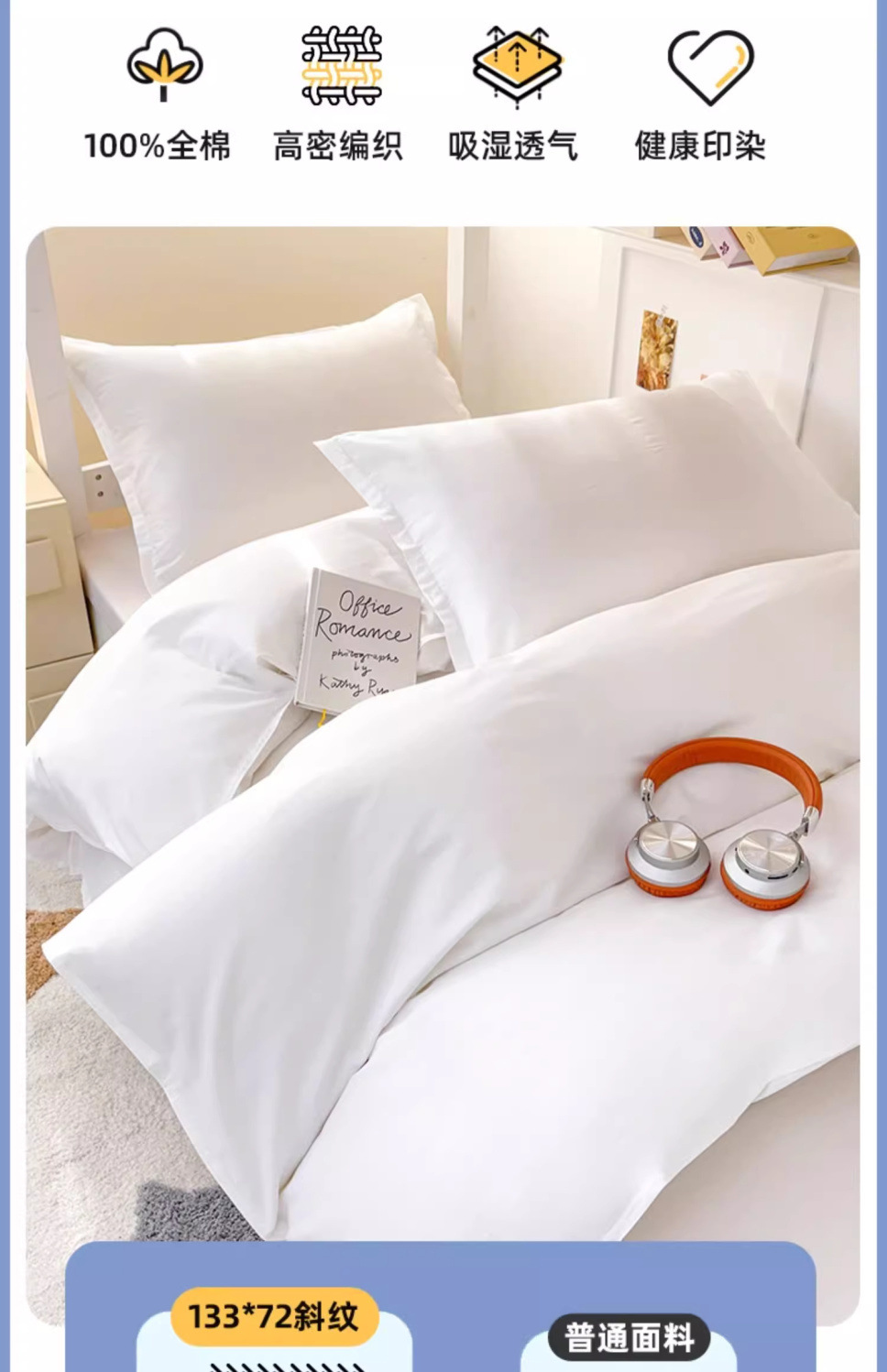 Ropa de cama de algodón blanco puro traje de tres piezas dormitorio de estudiantes universitarios cama individual sábana de algodón funda de edredón seis