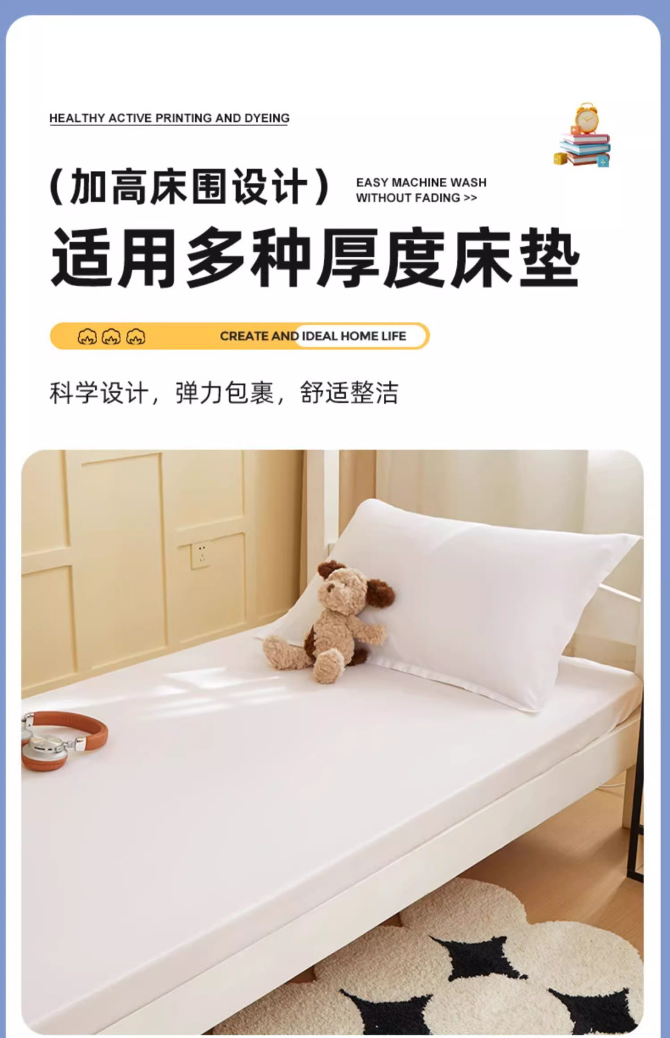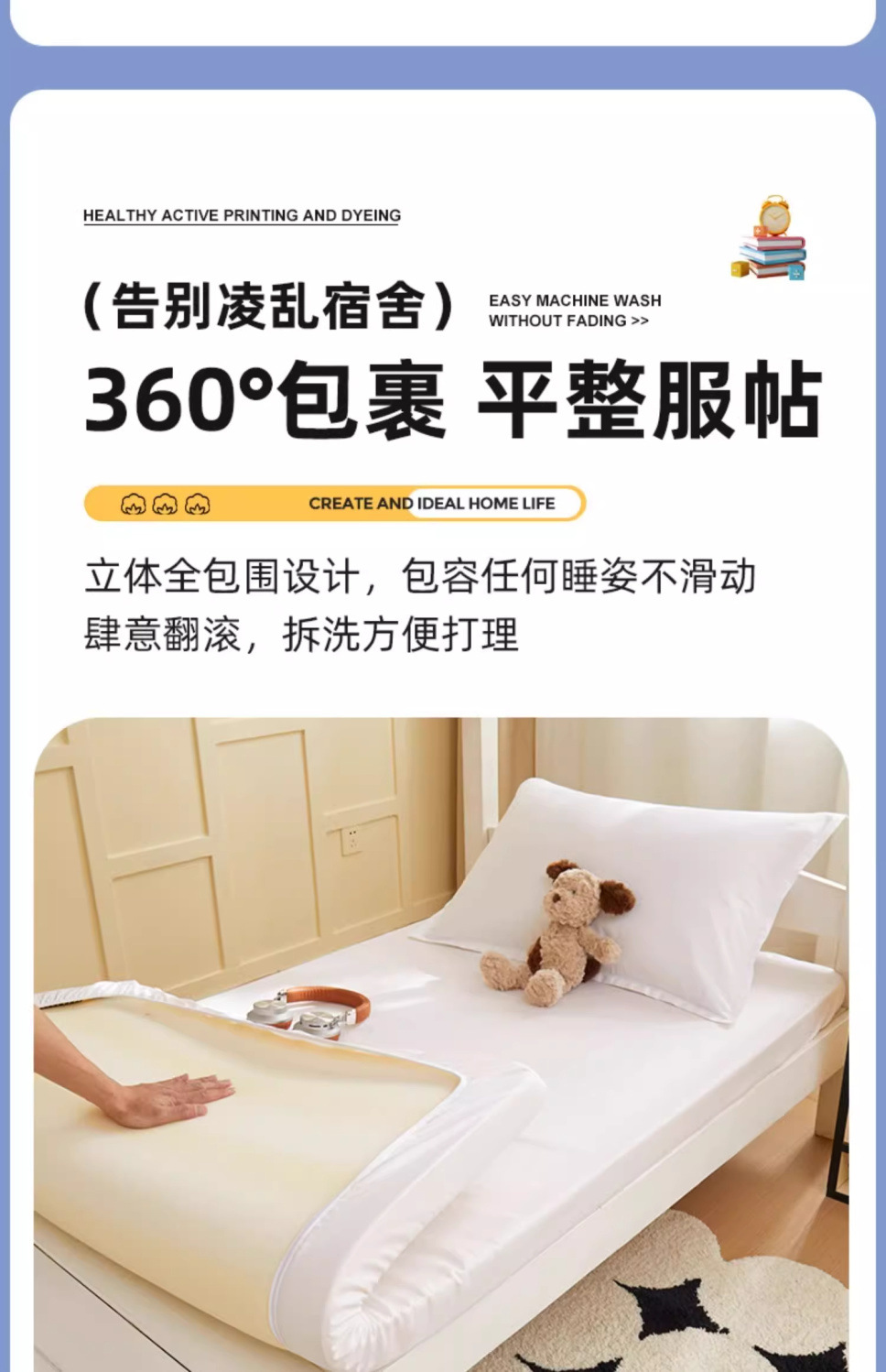 [Estilo de cama] 0.9 cama de tres piezas colchón de 5cm de espesor