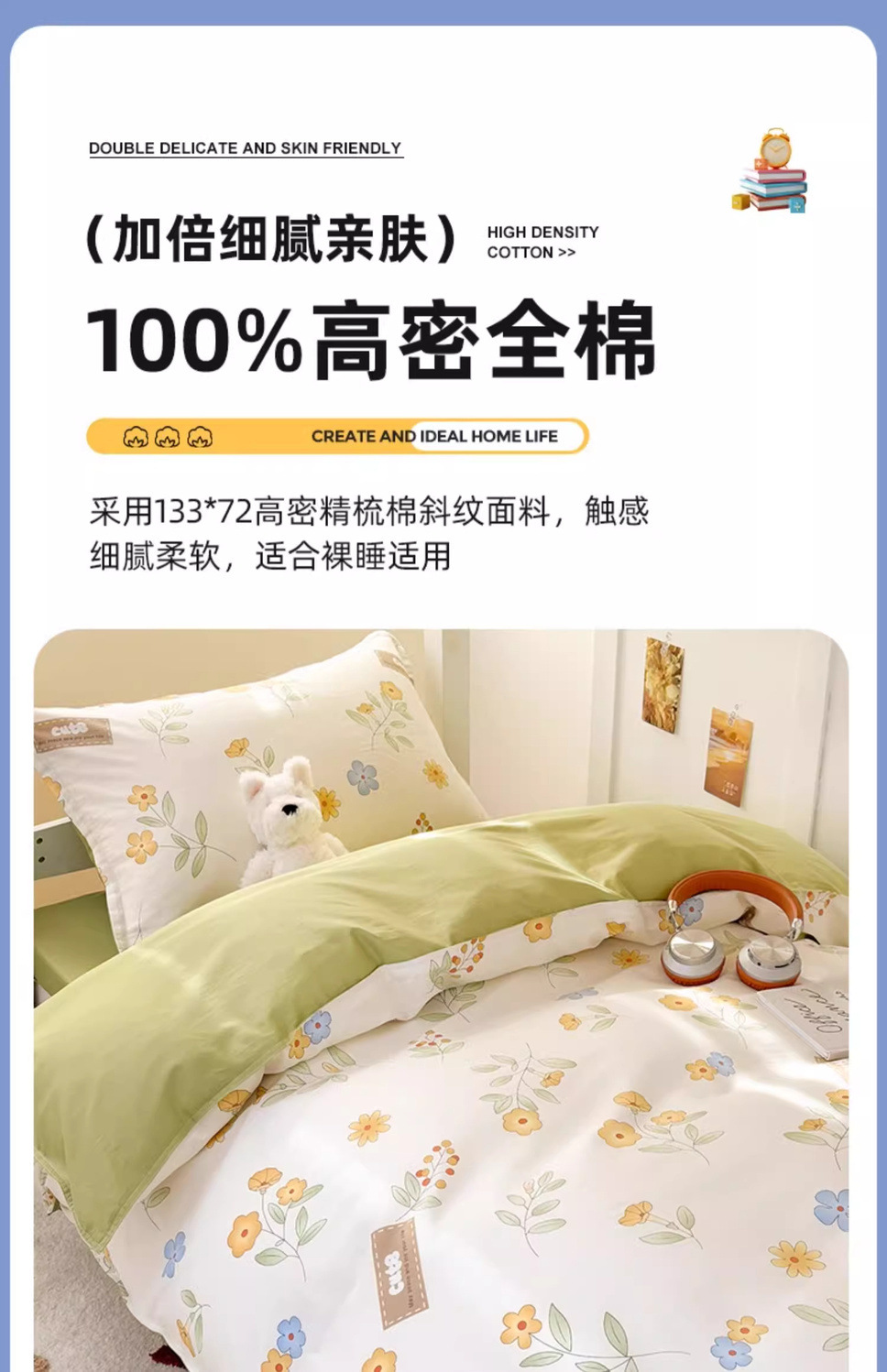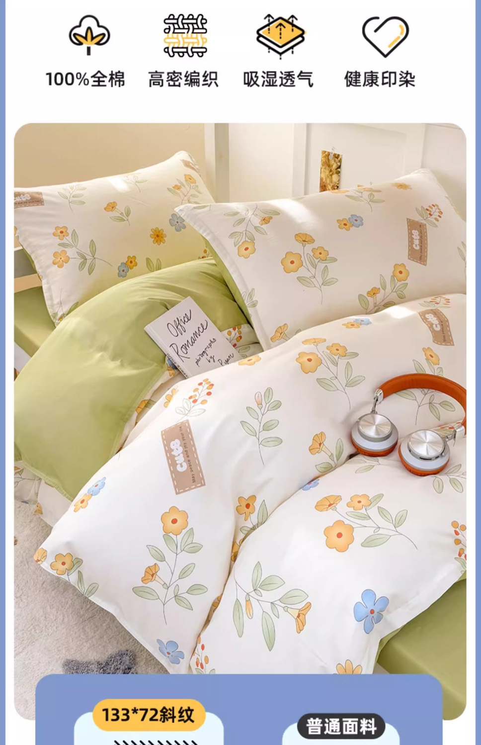 [Estilo de cama] 1.2 juego de cama de tres piezas (funda de edredón, funda de almohada)