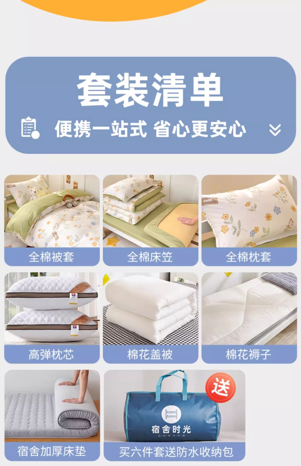 [Estilo de cama] Juego de seis piezas de cama 0.9 (colchón de edredón de algodón de 3 kg)