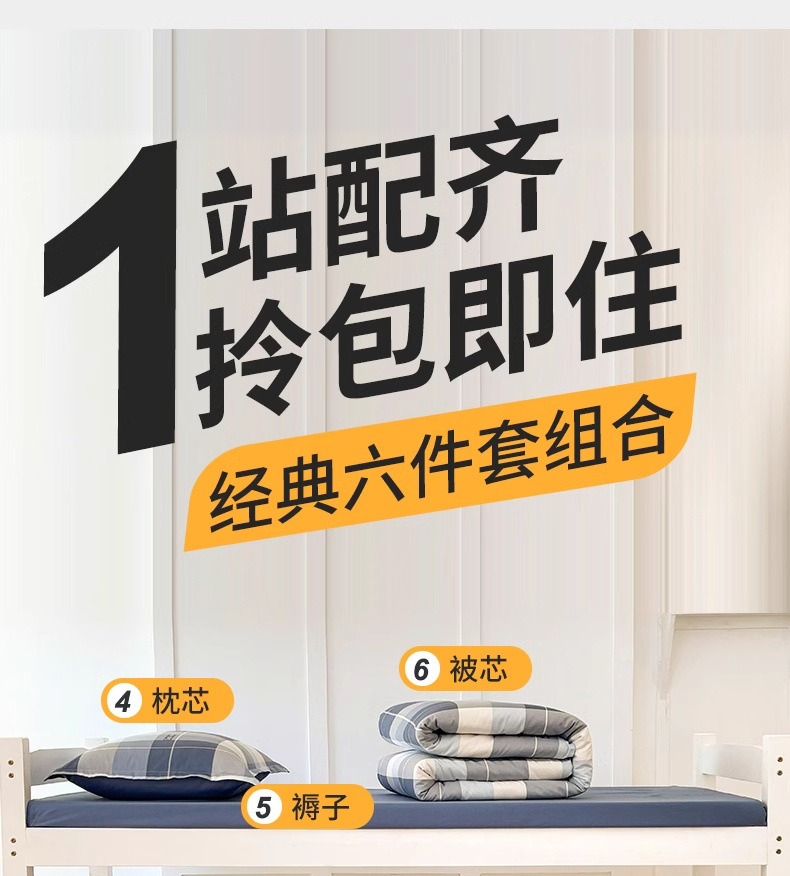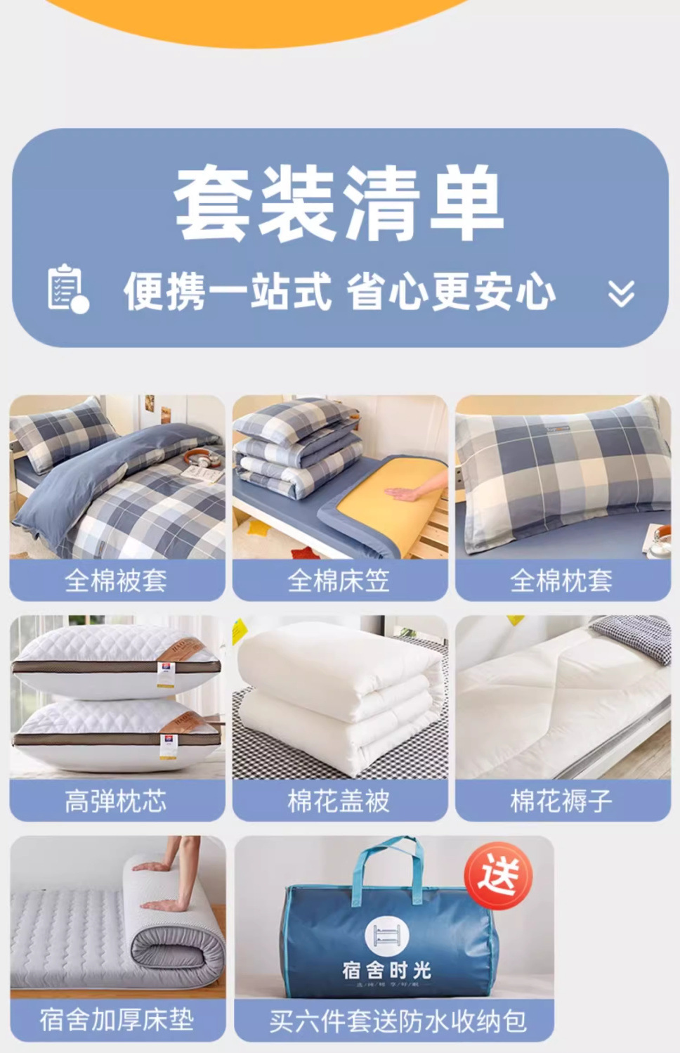 [Estilo de cama] Juego de seis piezas de cama 0.9 (colchón de edredón de algodón de 3 kg)
