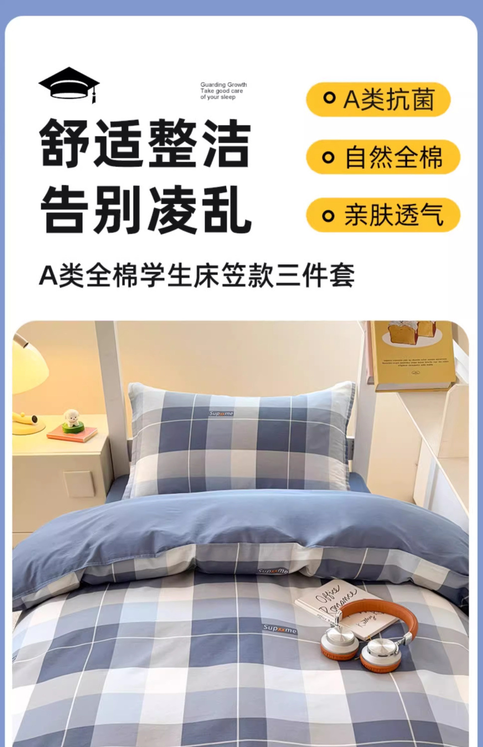 Ropa de cama de dormitorio de estudiantes de algodón puro juego de tres piezas 90x190x200 sábanas de algodón fundas edredón dormitorio individual