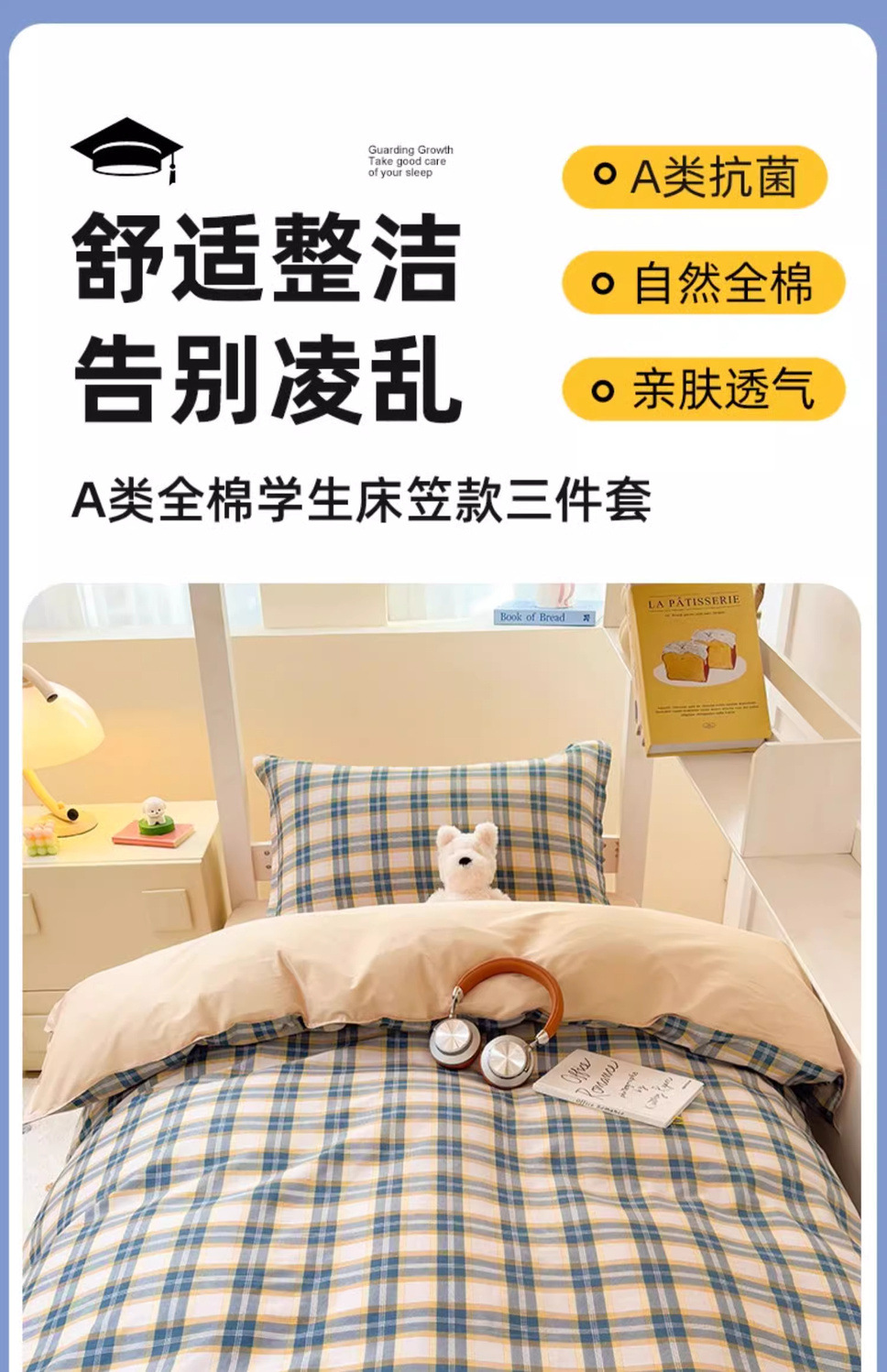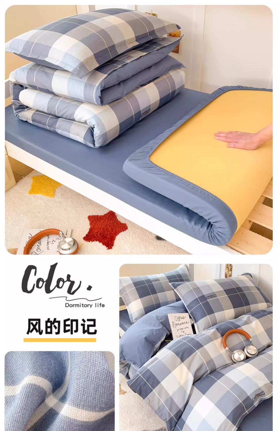 Ropa de cama de tres piezas para dormitorios universitarios de algodón puro, sábanas de algodón, fundas de edredón, sábanas, ropa de cama, dormitorio individual, juego completo